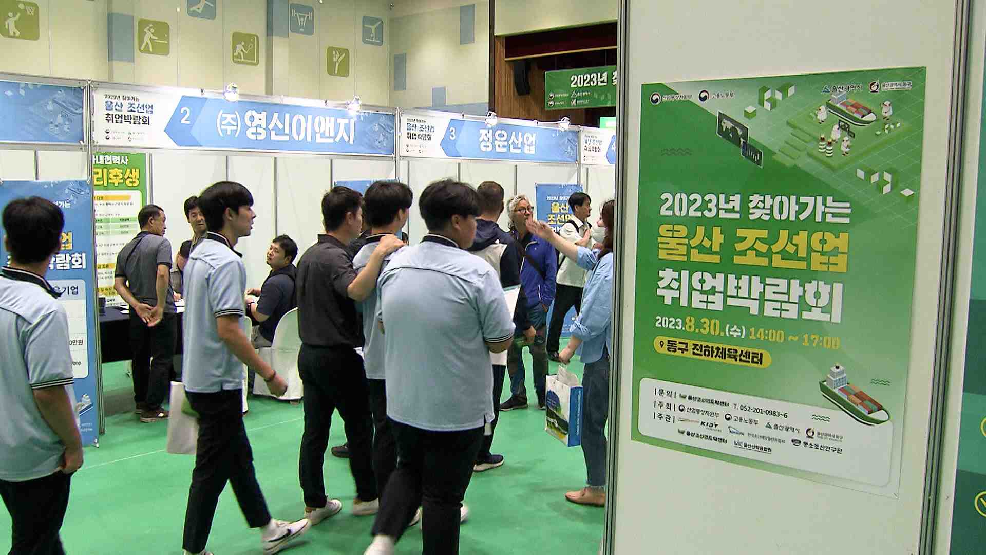 울산 조선업 인력난 해소를 위한 '2023 찾아가는 울산 조선업 취업박람회'가 오늘(8/30) 오후 동구 전하체육센터에서 열렸습니다.