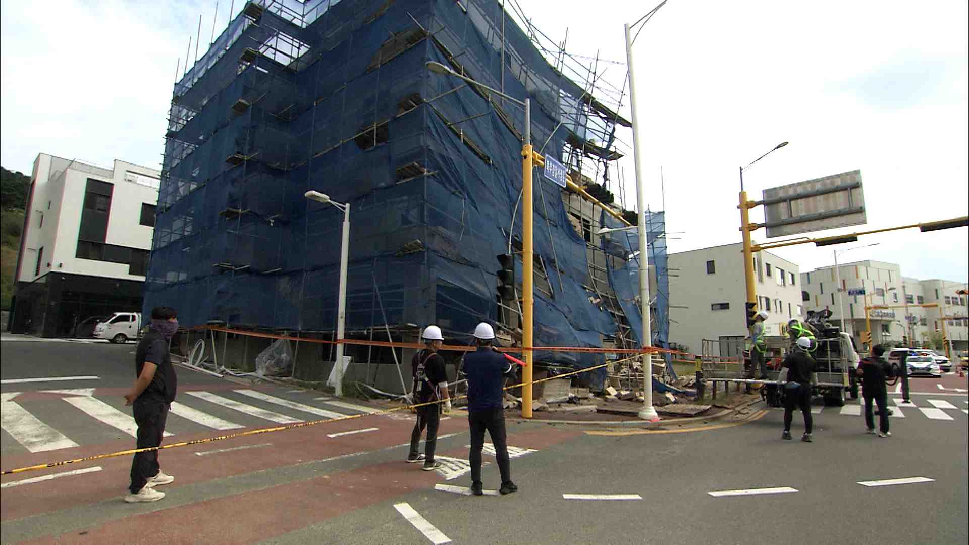 오늘(9/12) 오전 11시 40분쯤 북구 화봉동의 한 4층 신축 건물 공사장에서 건물 외벽에 설치된 임시 가설물인 비계가 무너지는 사고가 발생했습니다.