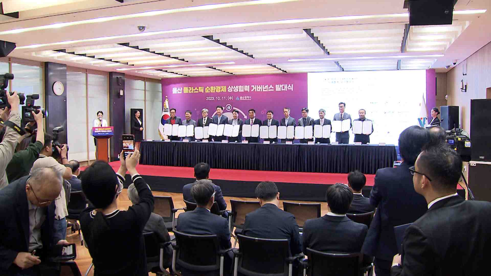 민관협력에는 울산시 등 지원 기관 9곳과 폐플라스틱 재활용사업에 동참하기로 한 21개 기업이 참여합니다.