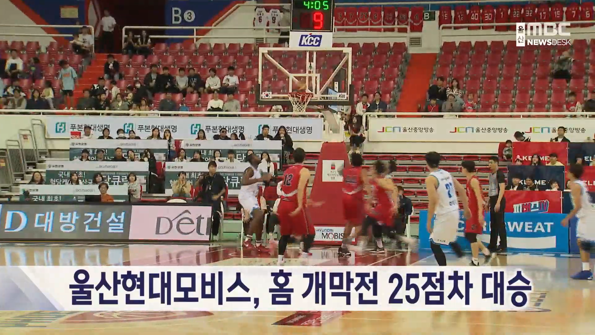 프로농구 울산현대 모비스가 오늘(10/21) 대구 한국가스공사를 상대로 펼친 홈 개막전에서 87대 62로 대승을 거뒀습니다.