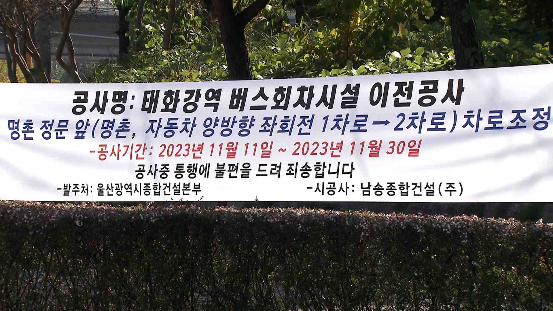 울산시는 명촌정문 앞 교차로에서 기존 1개로 운영되던 현대자동차 방면과 진장명촌지구 방면 좌회전 차로를 1개씩 늘리고 직진 차로를 1개 축소하기로 했습니다.