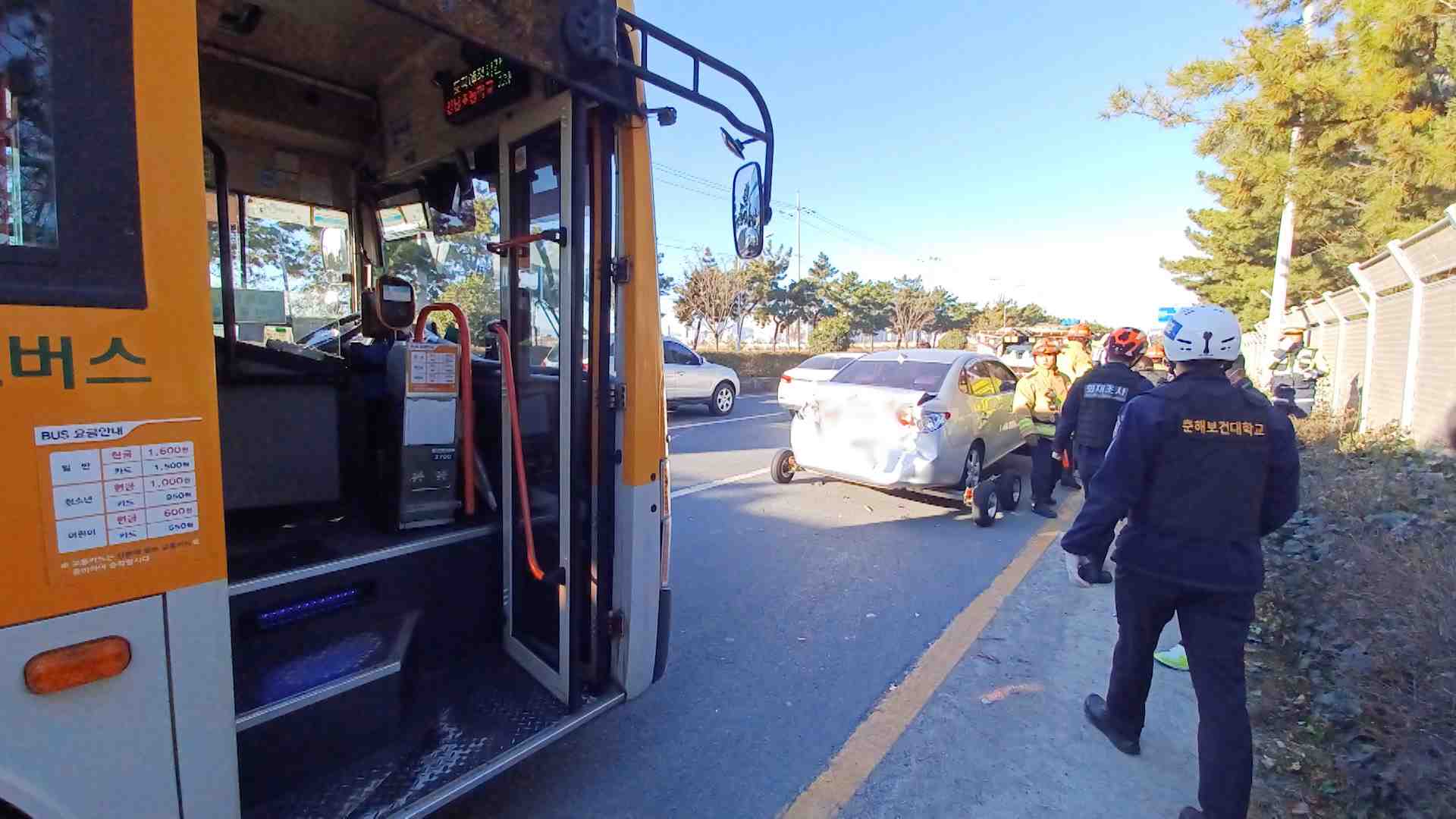 오늘(12/1) 오전 8시 45분쯤 울산 북구 염포동 아산로에서 시내버스가 앞 승용차를 들이 받으면서 차량 2중 추돌 사고가 났습니다.