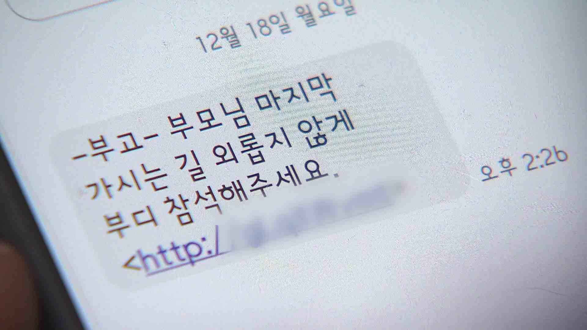 경찰은 지인이 보낸 문자 메시지도 인터넷 주소가 포함된 문자 메시지는 악성앱 등에 노출돼 보내진 문자 메시지일 수 있다며 부고 관련 문자 메시지는 지인에게 통화 등을 통해 확인해 달라고 당부했습니다.