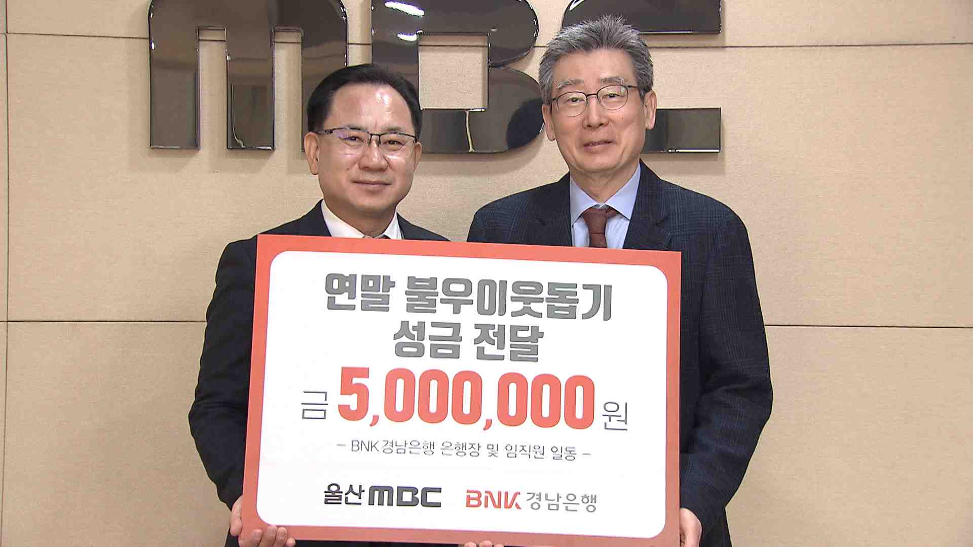BNK경남은행 울산영업본부는 오늘(12/20) 울산MBC를 방문해 희망 2023 나눔캠페인 성금 5백만 원을 기부했습니다.