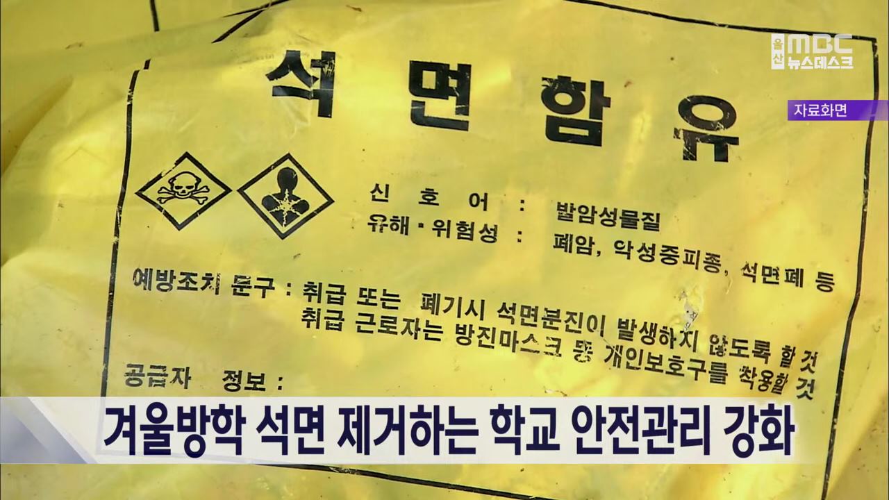 겨울방학 동안 석면 해체·제거 작업을 멀이는 각급 학교에 대한 안전관리 감독이 강화됩니다.