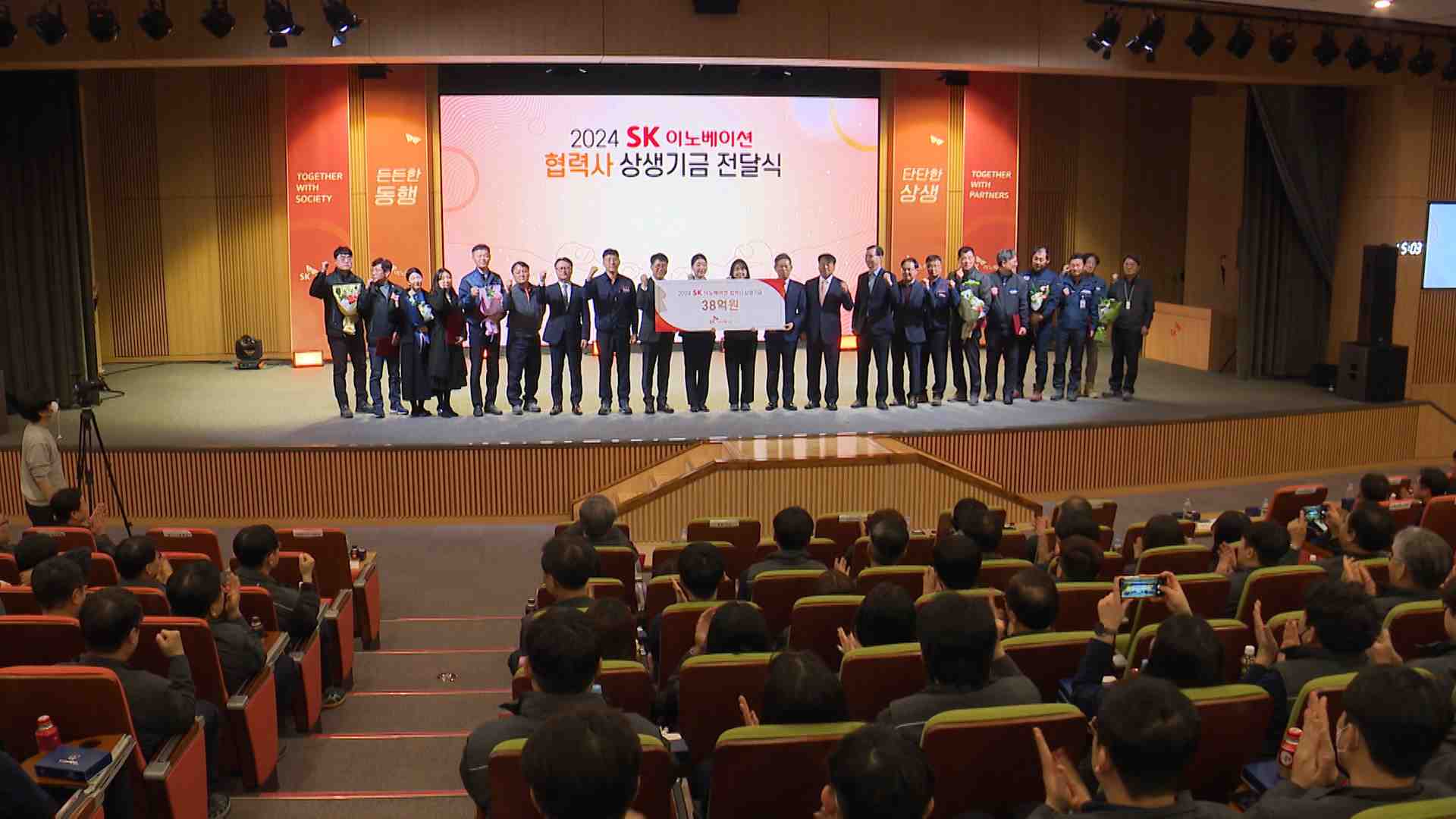 SK이노베이션은 오늘(1/31) 울산 콤플렉스에서 구성원들이 기본급 1%를 모아 조성한 상생기금 38억 원을 협력사에 전달했습니다.