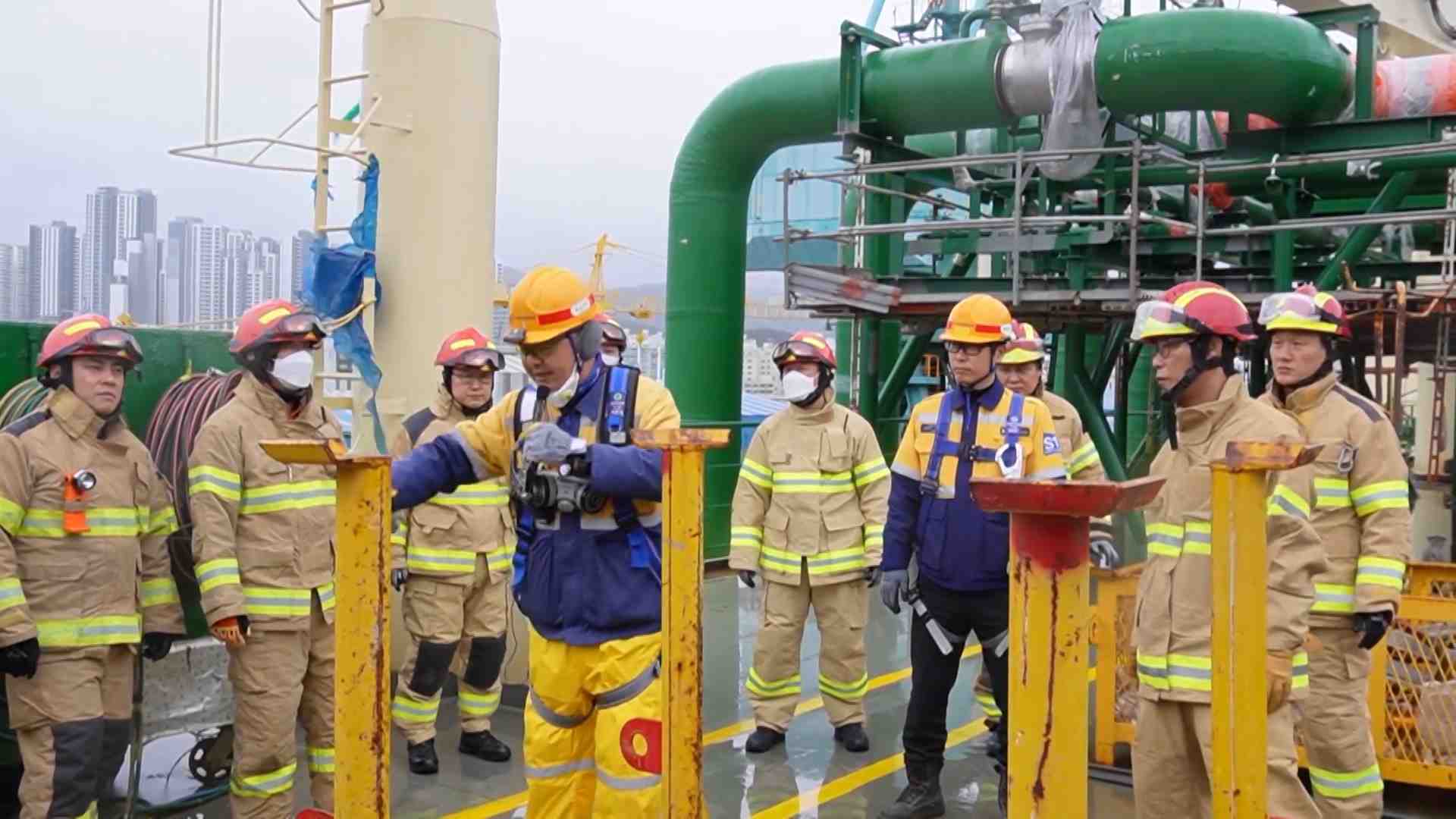 동부소방서가 오늘(2/21) HD현대중공업에서 대형 선박 화재에 대비한 훈련에 나섰습니다.