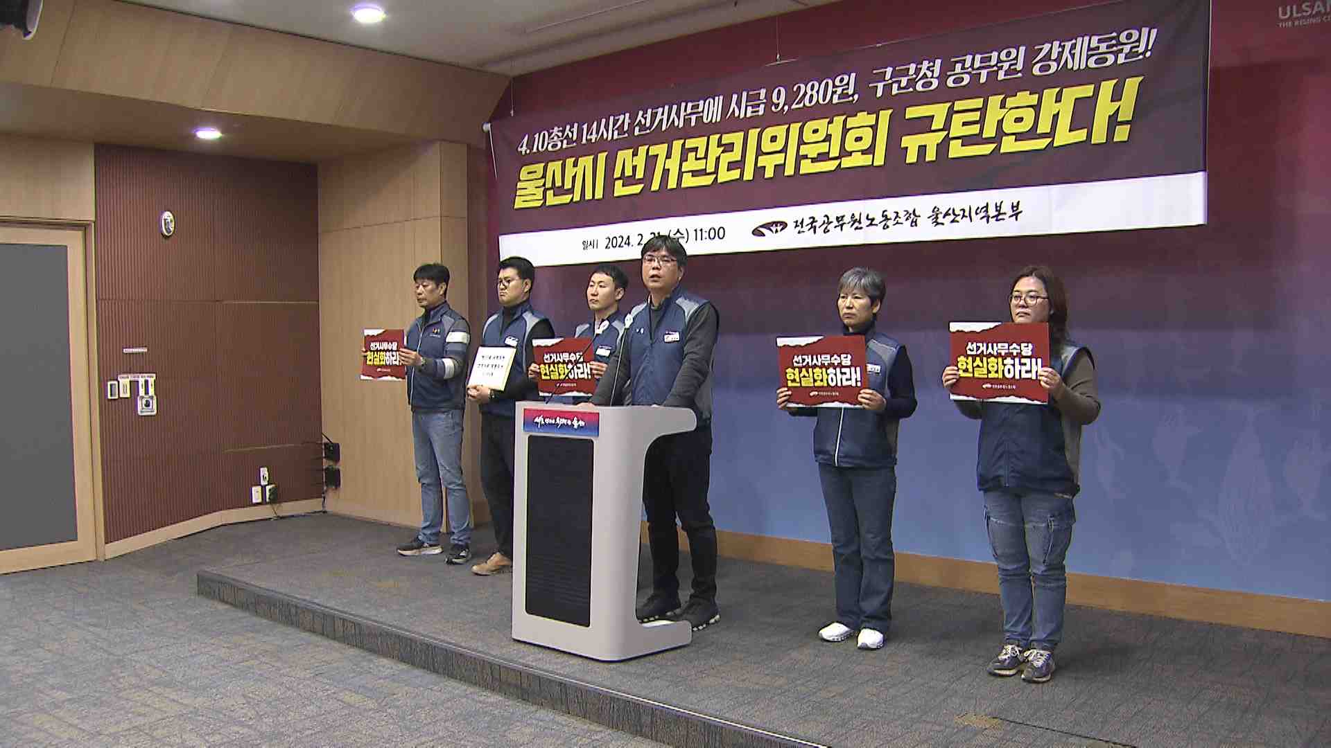 4월 총선을 앞두고 울산지역의 선거 사무에 공무원이 대거 동원될 예정인 가운데 노동계가 지자체 공무원에 대한 선거사무 강요와 부당한 대우를 개선하라고 요구했습니다.