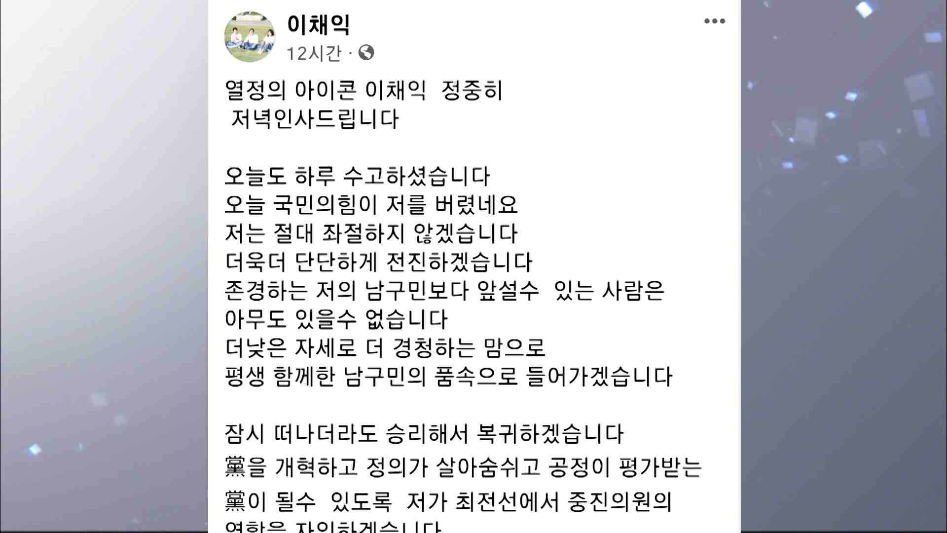 이 의원은, 국민의힘이 남구갑에 국민추천제를 도입한 건 현역 의원인 자신을 버린 거라며, 지지자들과 함게 험로를 개척하겠다고 SNS메시지를 통해 앞으로의 계획을 밝혔습니다.