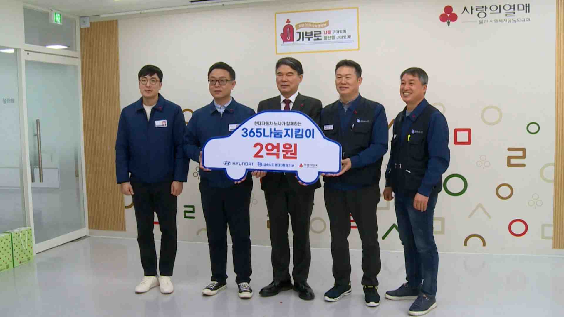 현대차 노사는 오늘(3/12) 지역사회를 위한 '365나눔지킴이' 기금에 2억원을
