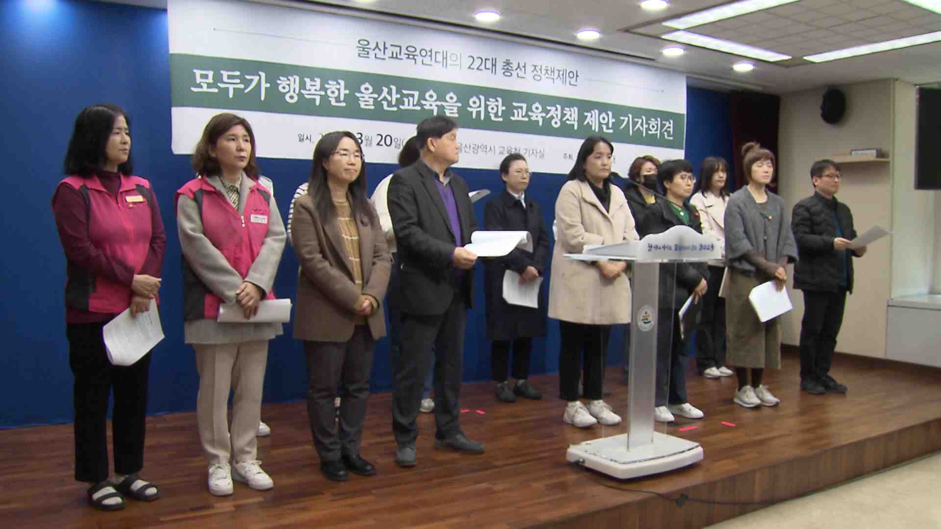 11개 시민사회단체로 구성된 울산교육연대는 오늘(3/20) 울산시교육청에서 기자회견을 갖고 대입개편안 등 12개 총선 공약을 제안했습니다.