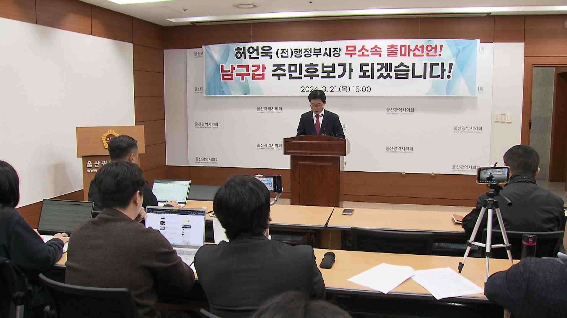 국민의힘을 탈당한 허언욱 예비후보가 오늘(3/21) 기자회견을 열어 남구갑 무소속 출마를 선언했습니다.