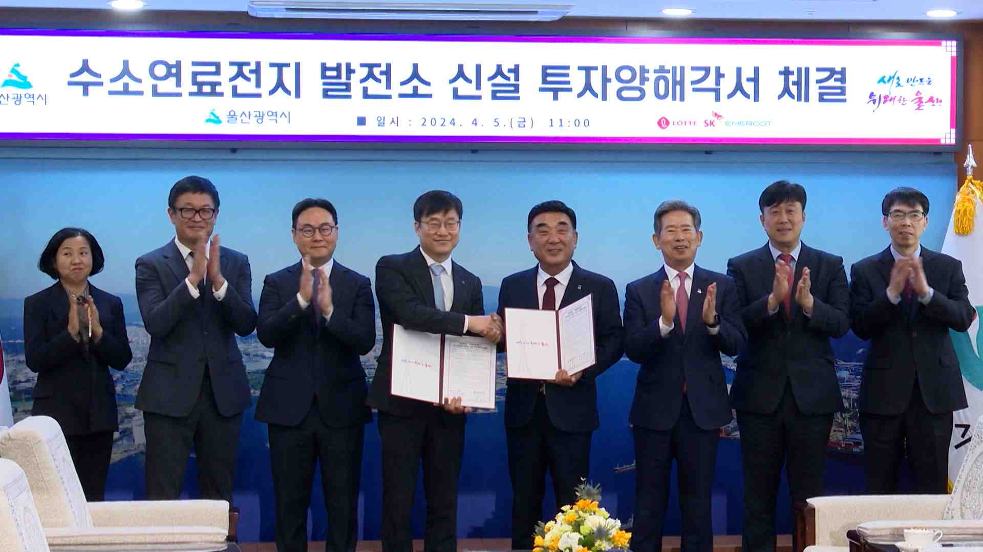 울산시와 롯데에스케이(SK) 에너루트가 오늘(4/5) 울산에 수소연료전지 발전소를 신설하는 투자양해각서를 체결했습니다.