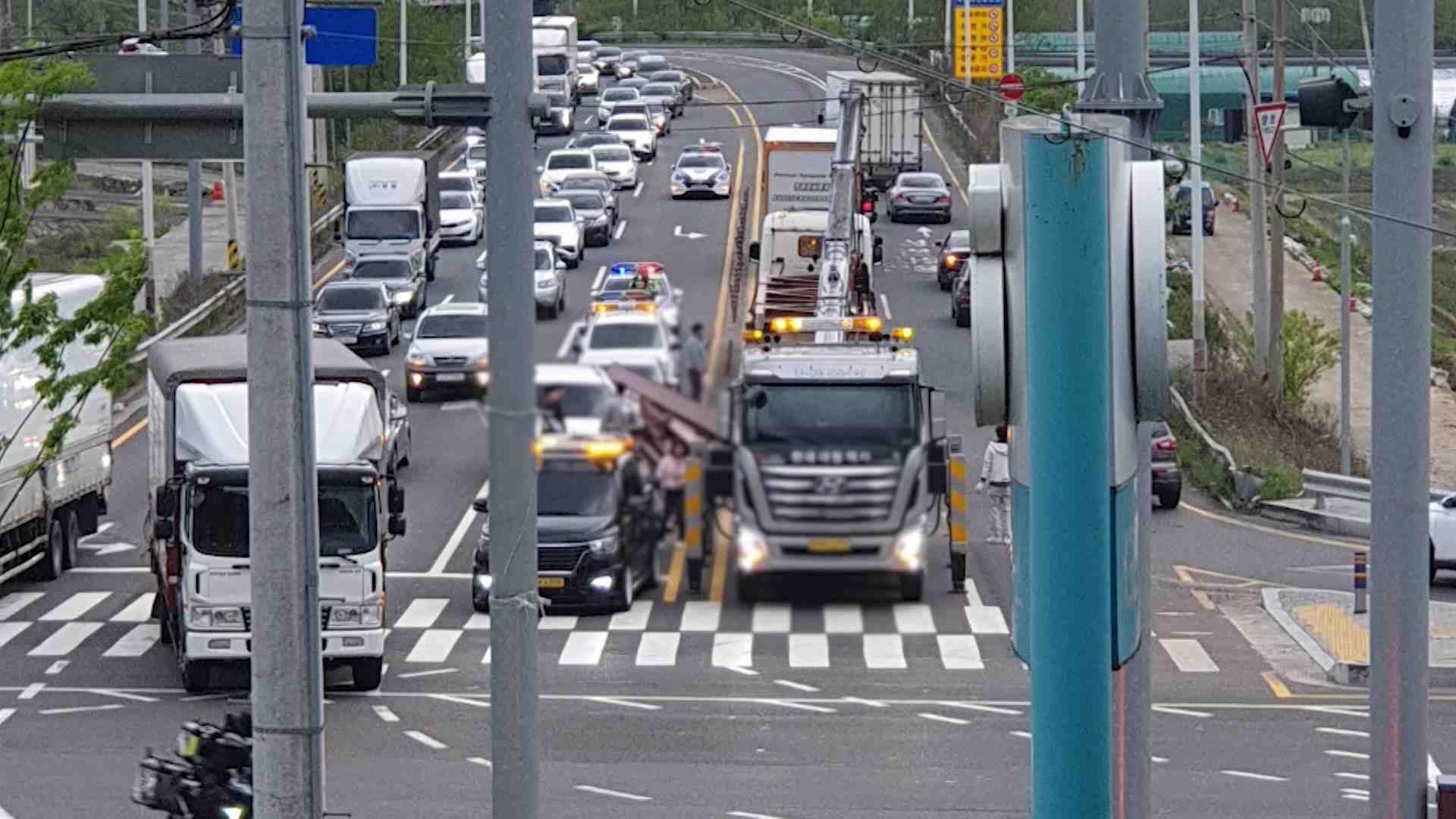 오늘(4/22) 오후 5시 35분쯤 북구 중산교차로를 지나던 한 화물차에서 철제 부품이 옆 차선에 대기 중이던 승용차로 떨어지는 사고가 발생해 2시간 넘게 교통 정체가 빚어졌습니다.
