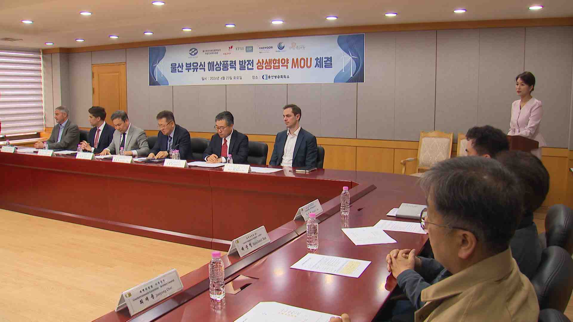 울산상공회의소와 울산수협,울산 부유식해상풍력 개발사 5곳은 오늘(4/23) 양해각서를 체결하고 주민 수용성 확보와 어업 피해보상 등 상생협력 모델을 발굴하기로 합의했습니다.