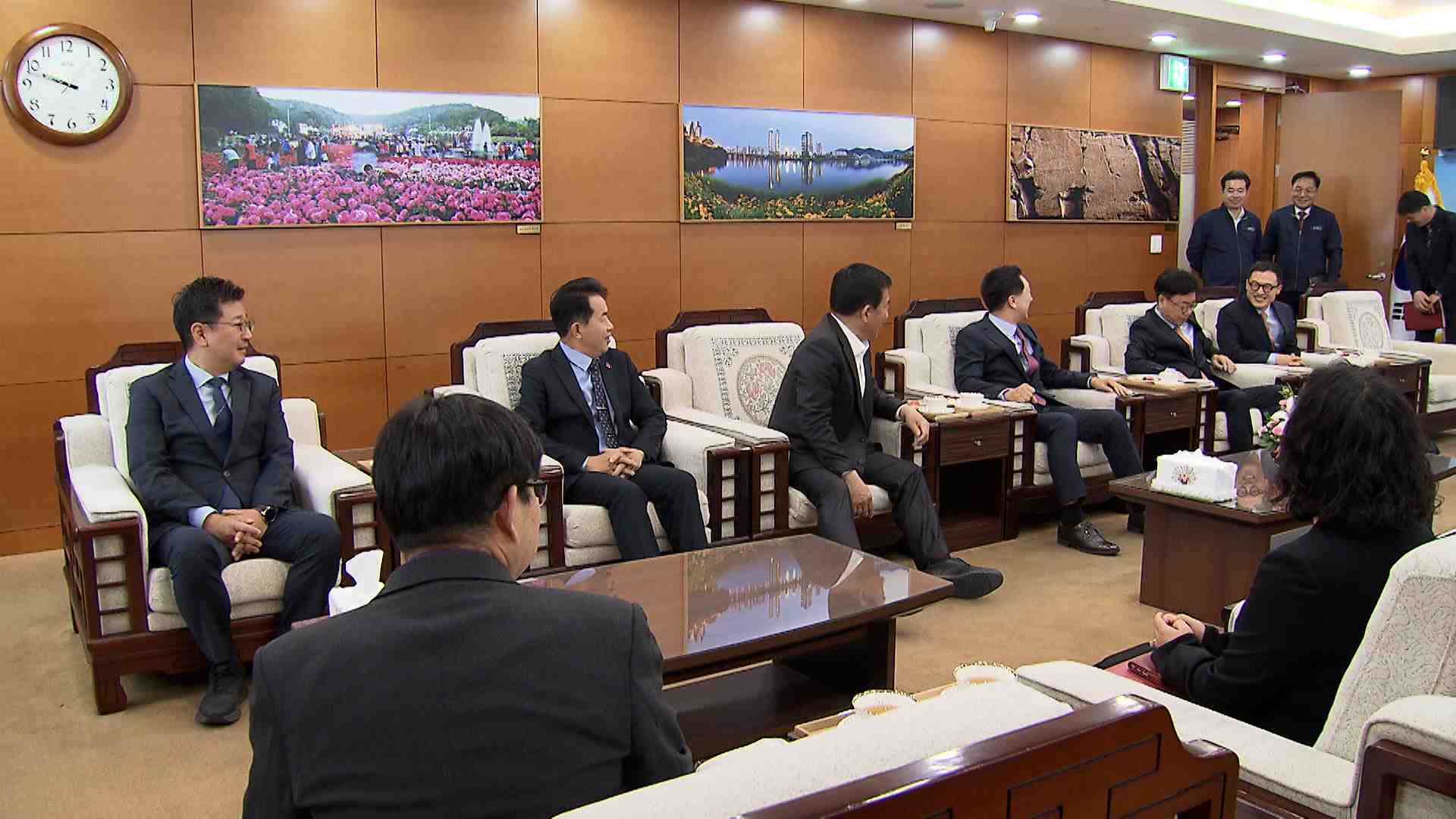 시는 국제정원박람회 유치, 울산고속도로 도심 지하화 등 16개 현안 사업과 현대중공업이 추진 중인 차기 구축함 사업에 정치권의 관심을 당부했습니다.