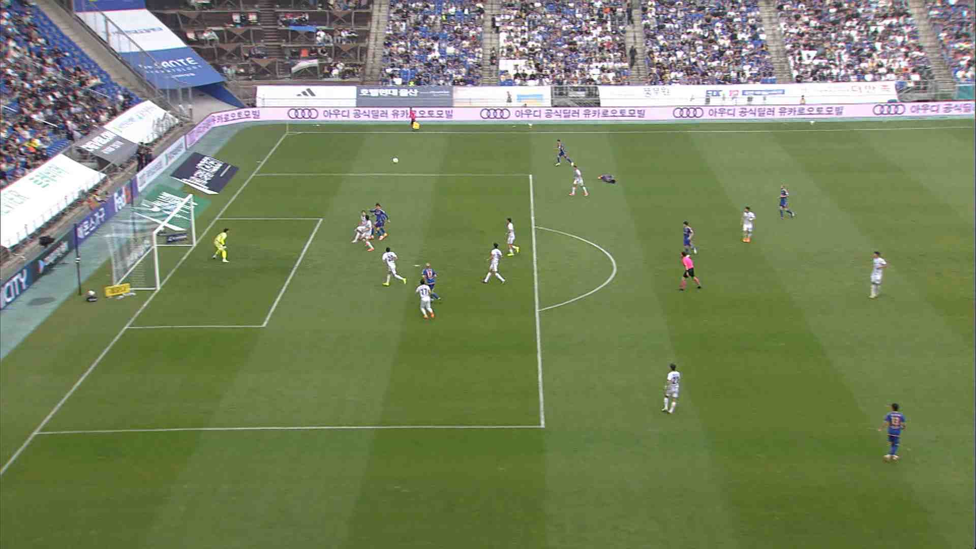 울산 문수축구 경기장에서 펼쳐진 울산과 김천의 경기에서 양 팀 합계 4골이 터지며 2-2 무승부를 기록했습니다.