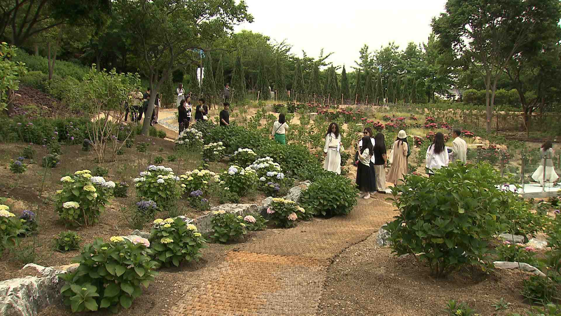 수국페스티벌은 전체 2만 2천 제곱미터 규모의 수국정원에서 앤드리스 썸머 등 모두 34개 품종, 2만 3천 본이 넘는 활짝핀 수국을 감상할 수 있습니다.