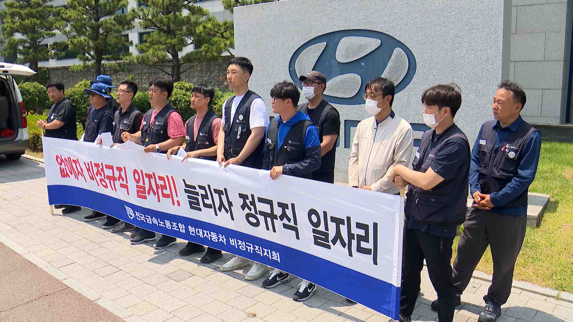 노조는 울산과 아산 등 국내 생산공장 4곳에 여전히 1만 4천 명이 넘는 비정규직 노동자들이 있다며 현대차가 좋은 일자리 창출에 나서야 한다고 주장했습니다.