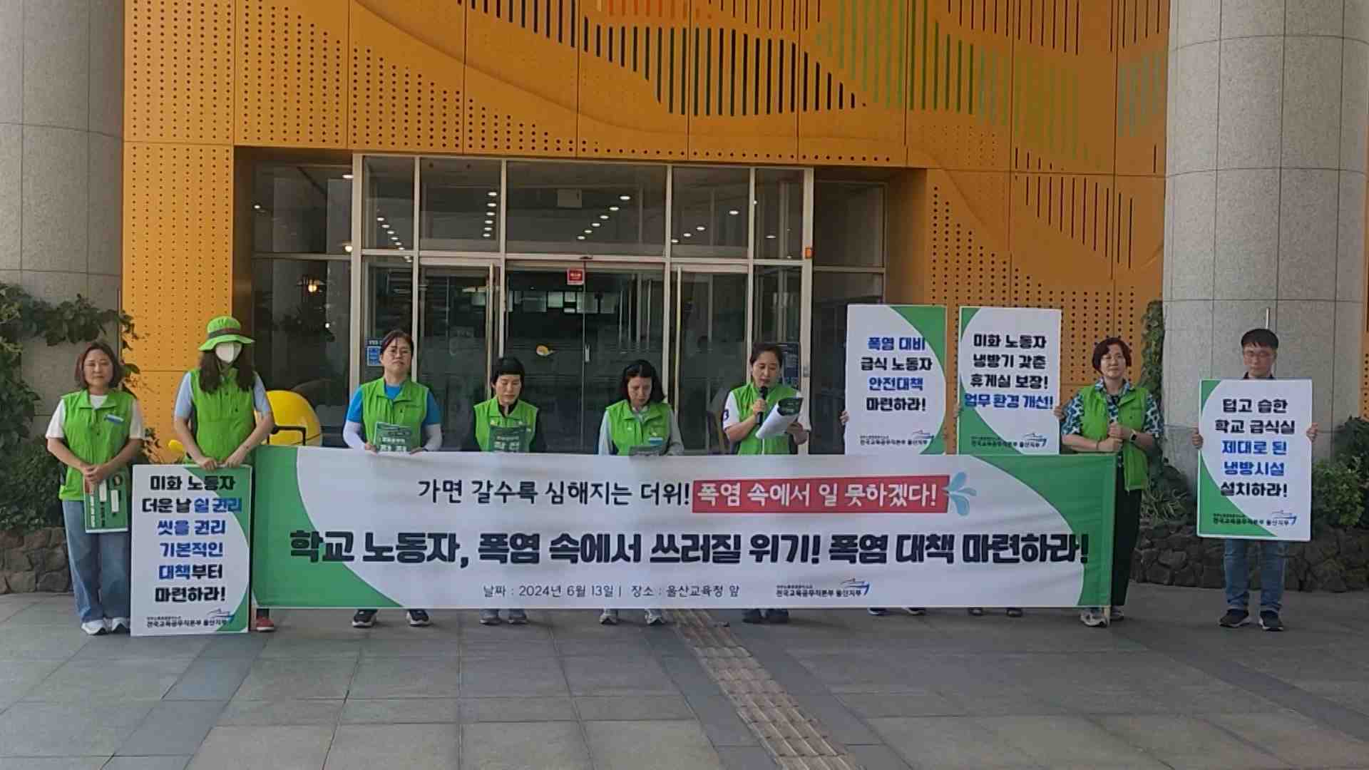 교육공무직 노조는 오늘(6/13) 울산시교육청 앞에서 기자회견을 열고 학교 노동자를 위한 폭염 대책을 마련해 달라고 주장했습니다.