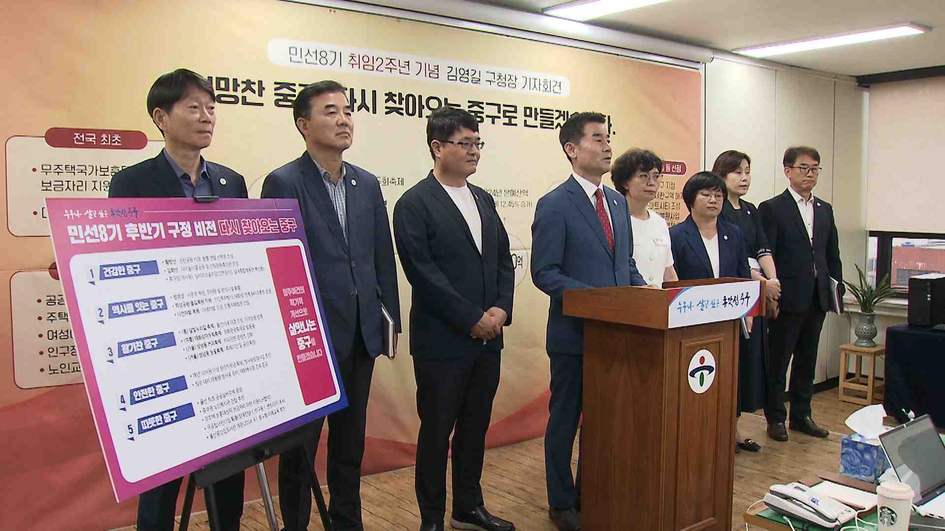 김영길 울산 중구청장이 오늘(7/2) 취임 2주년 기자회견을 열고 지난 2년 구정 운영 성과와 후반기 구정 운영 방향을 설명했습니다.