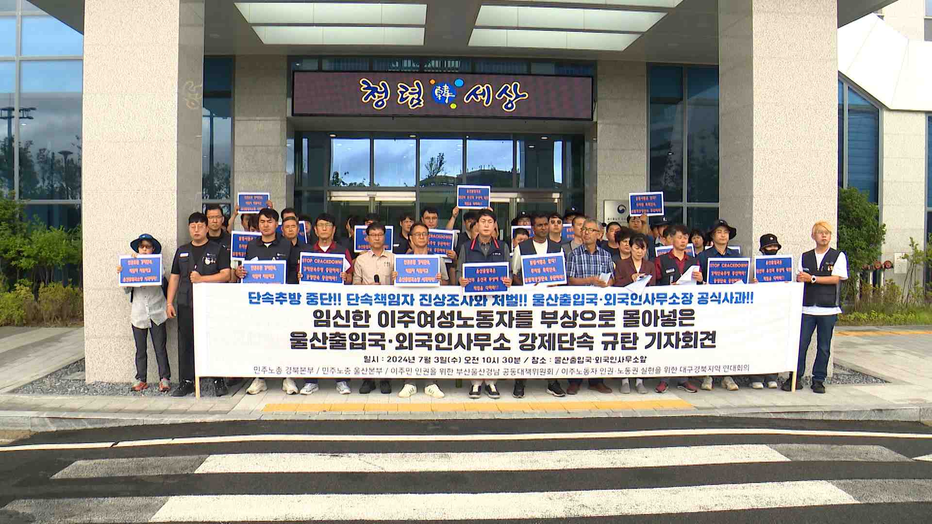 민주노총 울산지역본부가 기자회견을 열고 출입국 당국이 단속 지침을 무시하고 무리한 강제 단속을 벌였다고 책임자 처벌을 요구했습니다.
