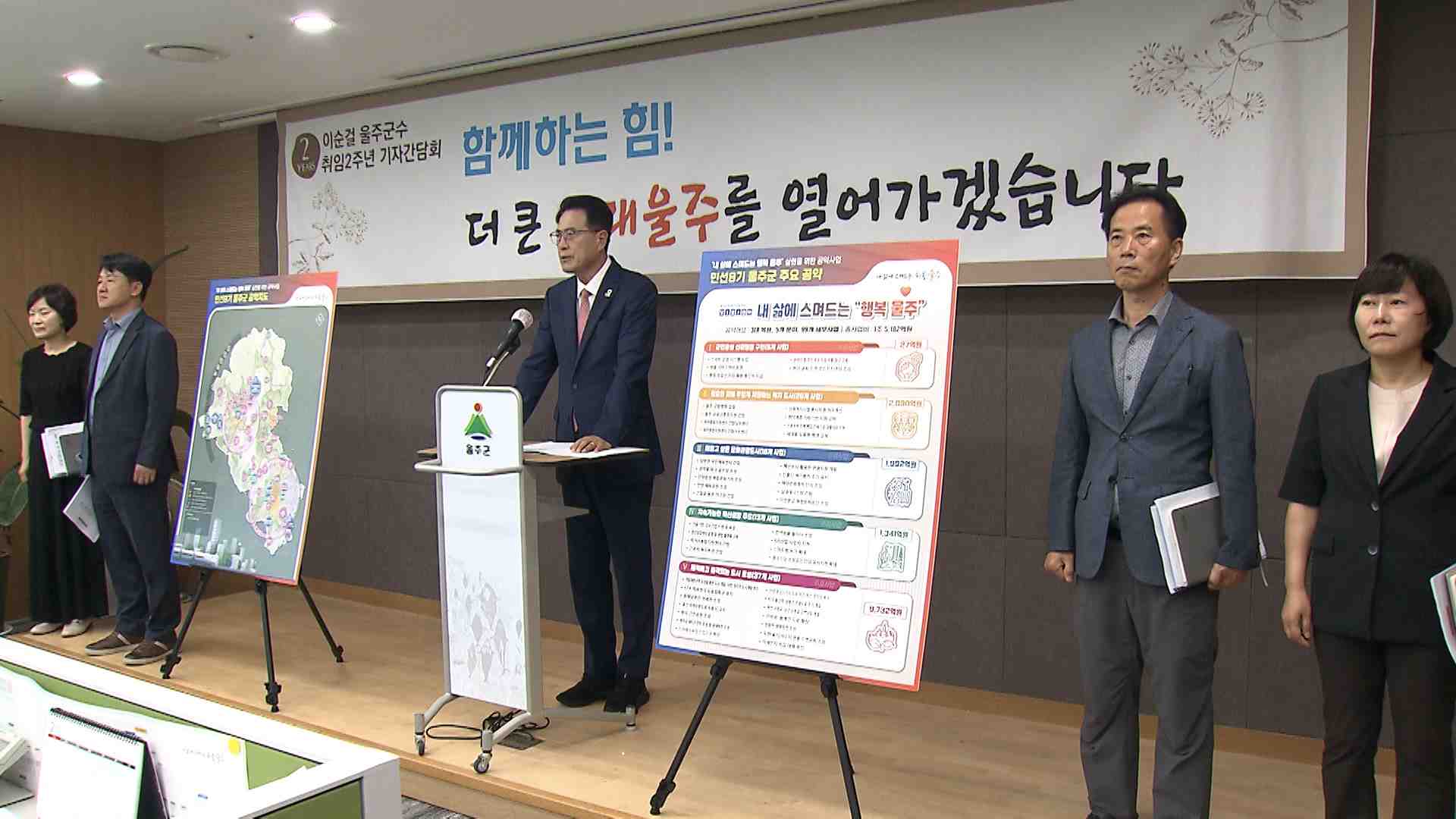 이순걸 울산 울주군수가 취임 2주년을 맞아 기자회견을 열고 지난 2년 동안 주요 군정 성과와 앞으로 군정 운영 계획을 밝혔습니다.
