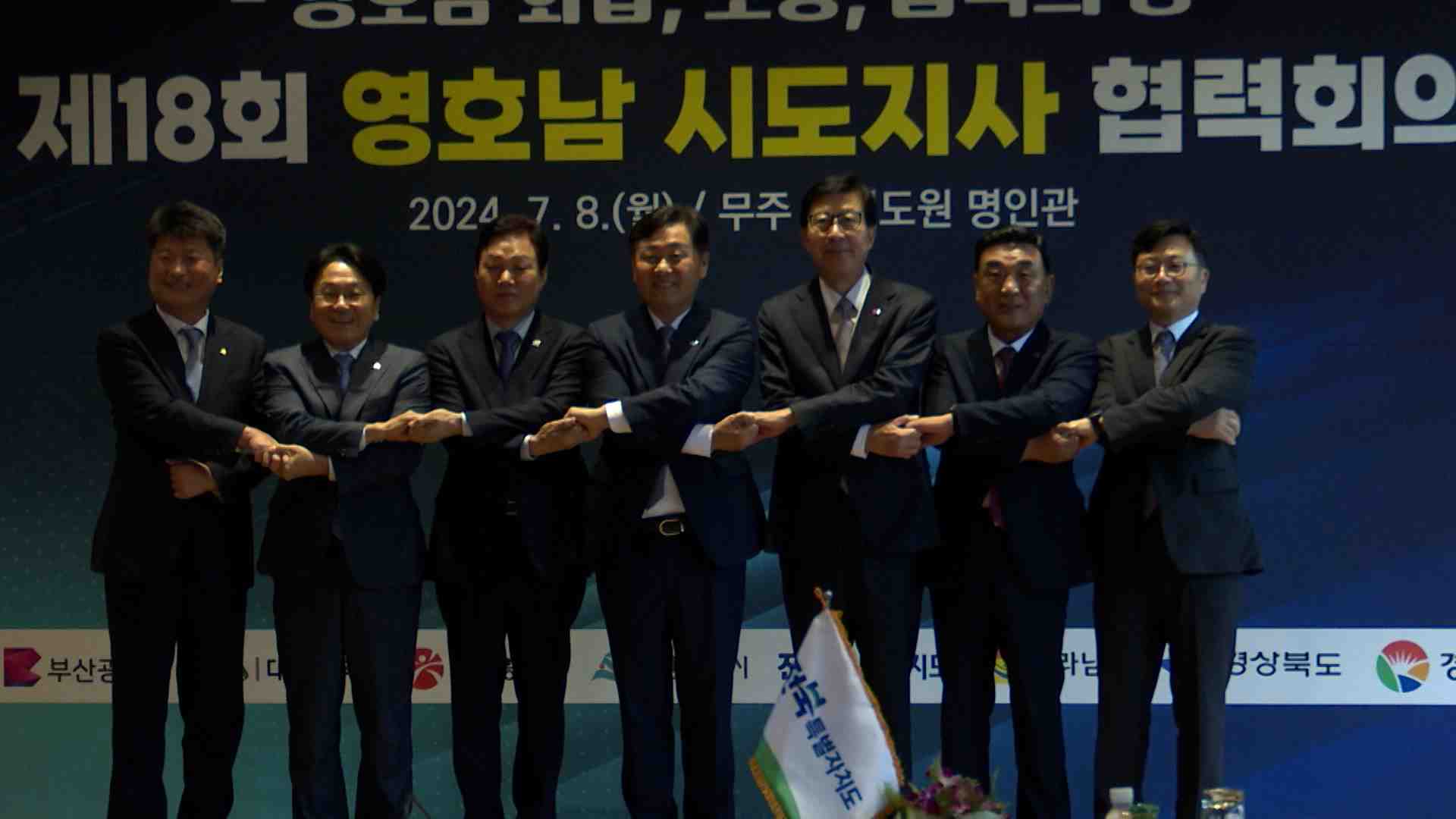 울산을 비롯한 영·호남 8개 시도지사가 협력회의를 열고 지방분권과 지역균형발을 위한 10대 분야 공동대응 성명서를 체결했습니다.