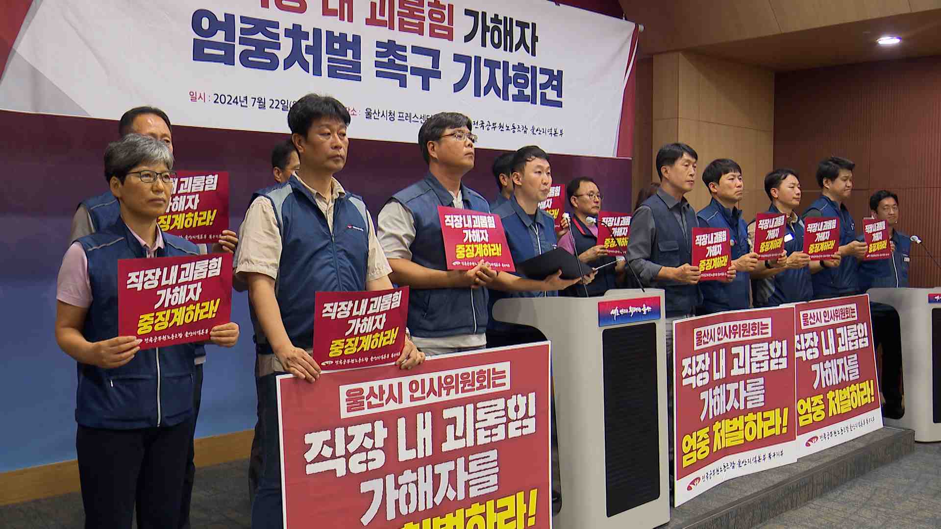 전국공무원노동조합 울산지부는 오늘(7/22) 기자회견을 열고 직장 내 괴롭힘 가해자를 엄중 처벌해 달라고 촉구했습니다.