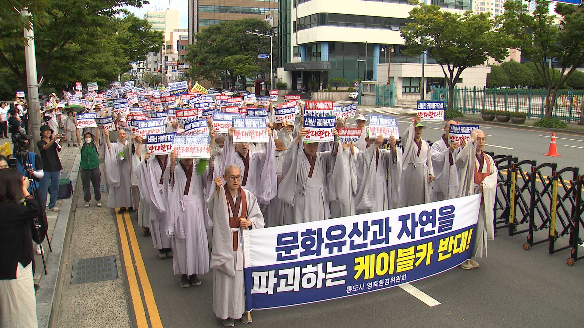 영축총림 통도사는 입장문을 통해, 케이블카 사업은 통도사의 유네스코 세계문화유산으로서의 가치를 심각하게 훼손한다며, 산과 사찰이 어우러진 문화 환경을 해칠 것이라고 주장했습니다.