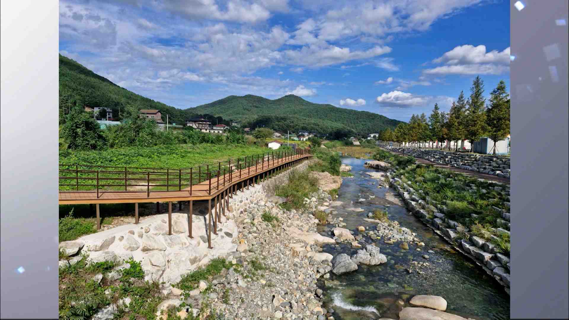 울주군은 작괘천을 중심으로 야영장이 들어선 오른쪽에 비해 상대적으로 낙후된 왼쪽을 개발해서 환경을 개선하기 위해 5억 원을 들여 보행로를 조성했다고 설명했습니다.