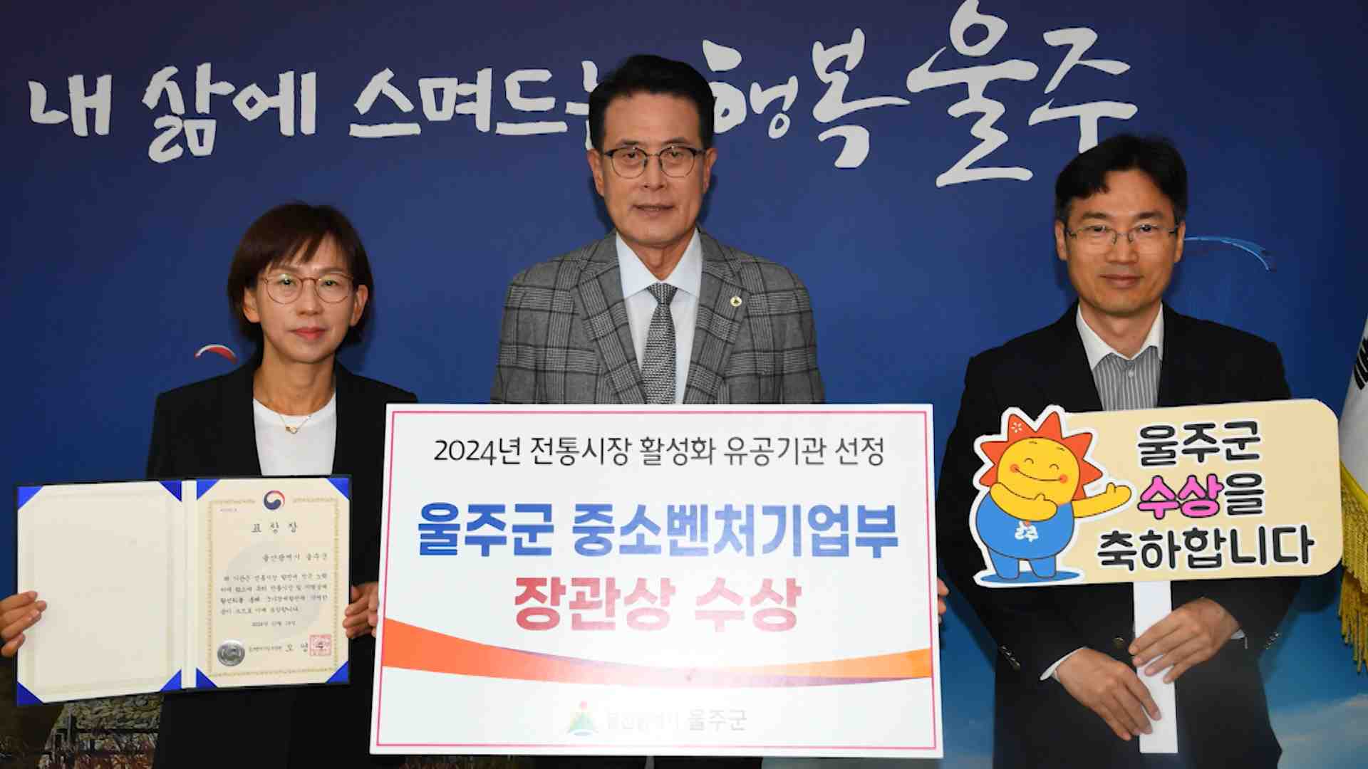 울주군이 중소벤처기업부 주관 '2024년 전통시장 및 상점가 활성화 유공 포상'에서 장관 표창을 받았습니다.