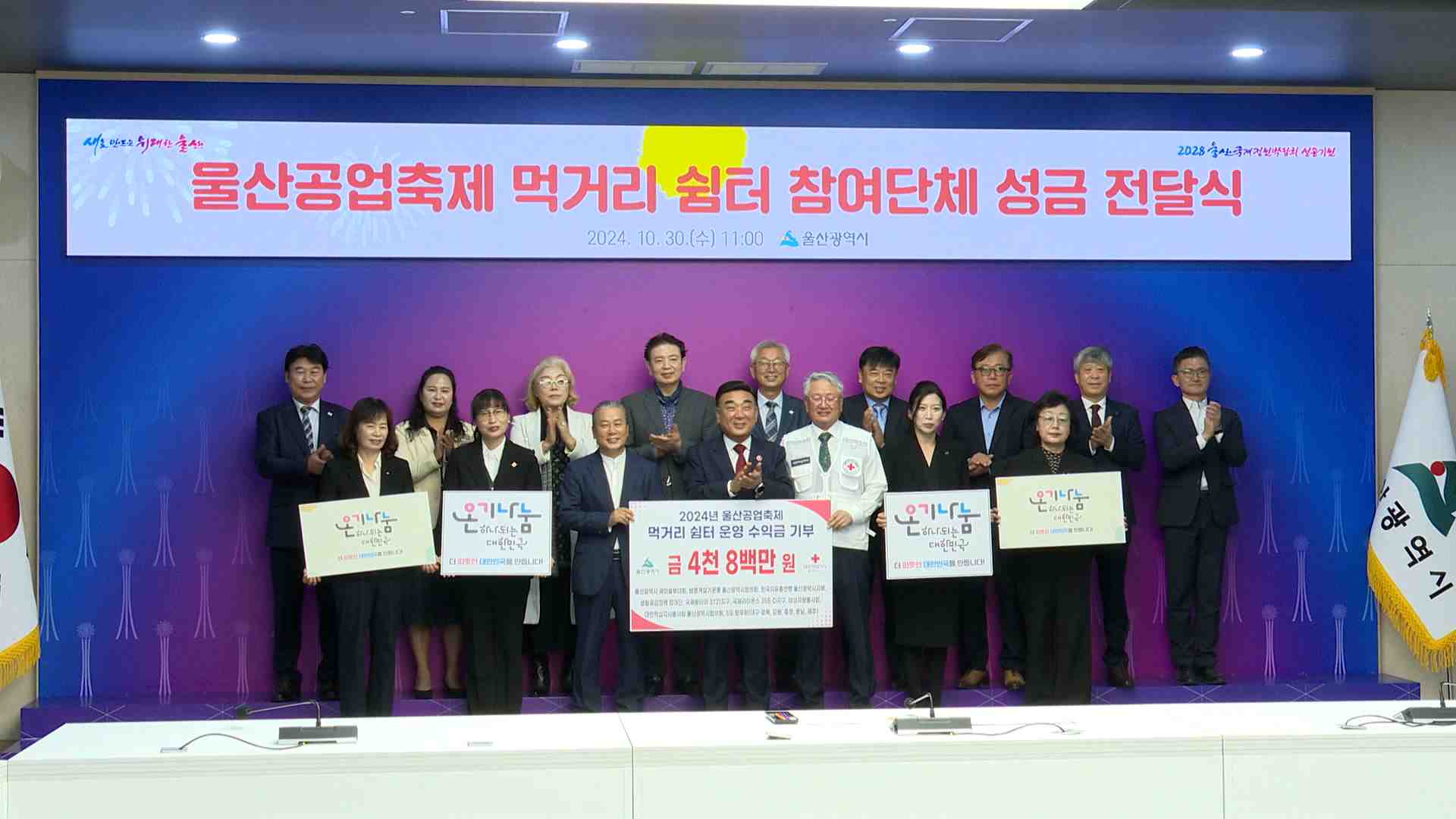 울산 공업축제에서 먹거리 쉼터를 운영한 지역 민간단체 13곳이 운영 수익금 중 4천800만 원을 기부했습니다.