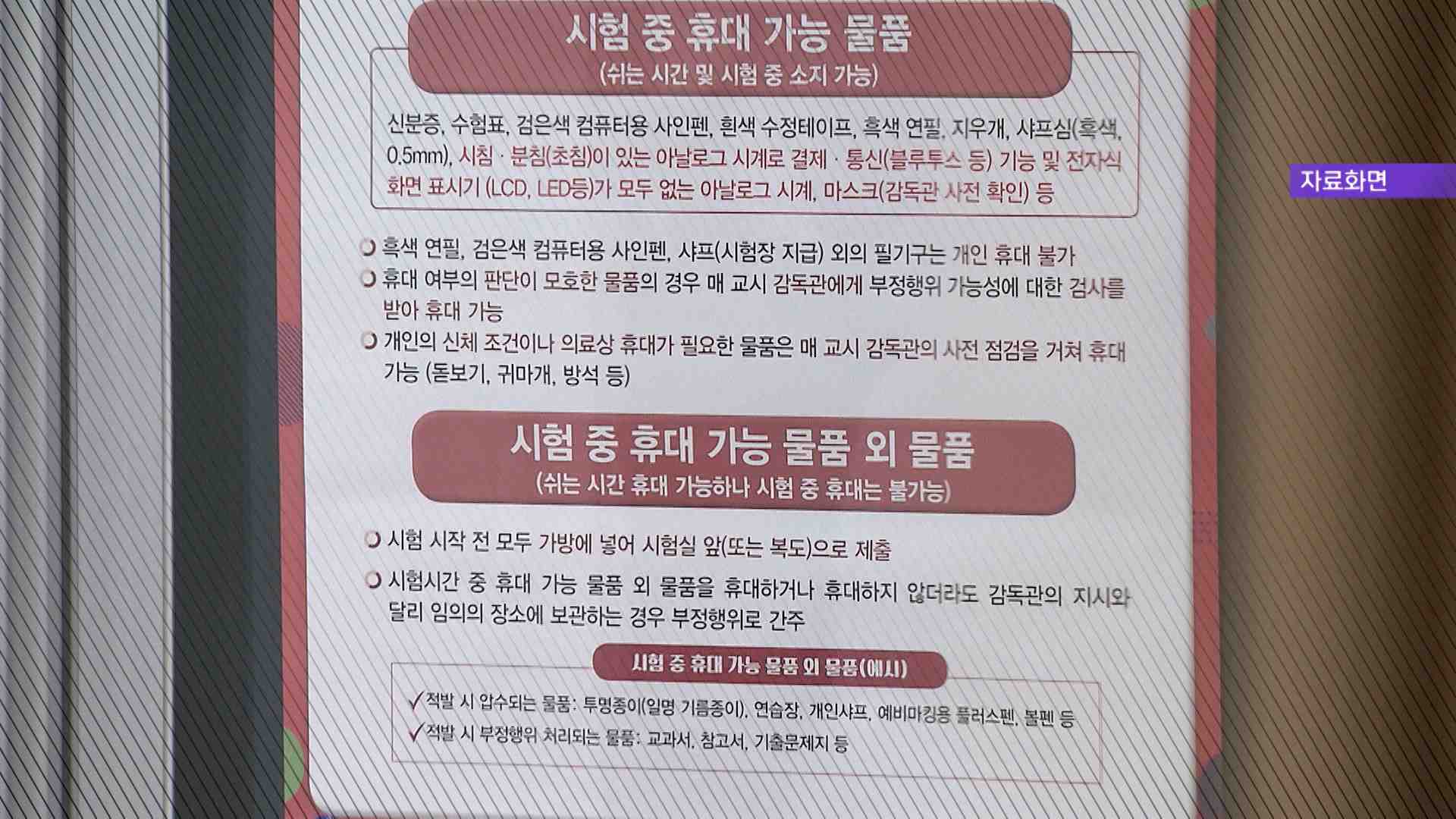 적발 유형은 반입금지 물품 소지 2건, 4교시 탐구영역 응시 규정 위반 1건, 시험 종료 후 답안 작성 2건으로 확인됐습니다.