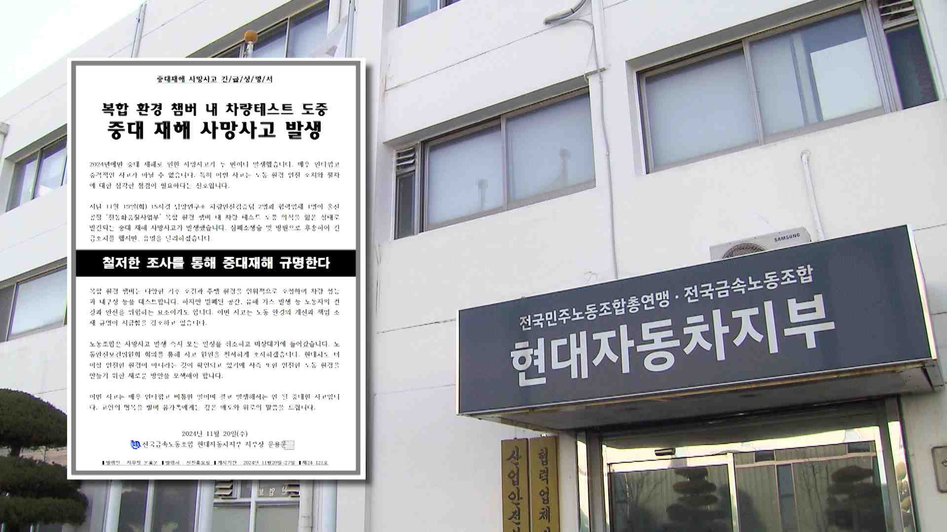 노조는 철저한 조사와 함께 현대차도 더 이상 안전한 환경이 아니라는 것이 확인됐다며 사측이 노동 환경 개선에 나설 것을 요구했습니다.