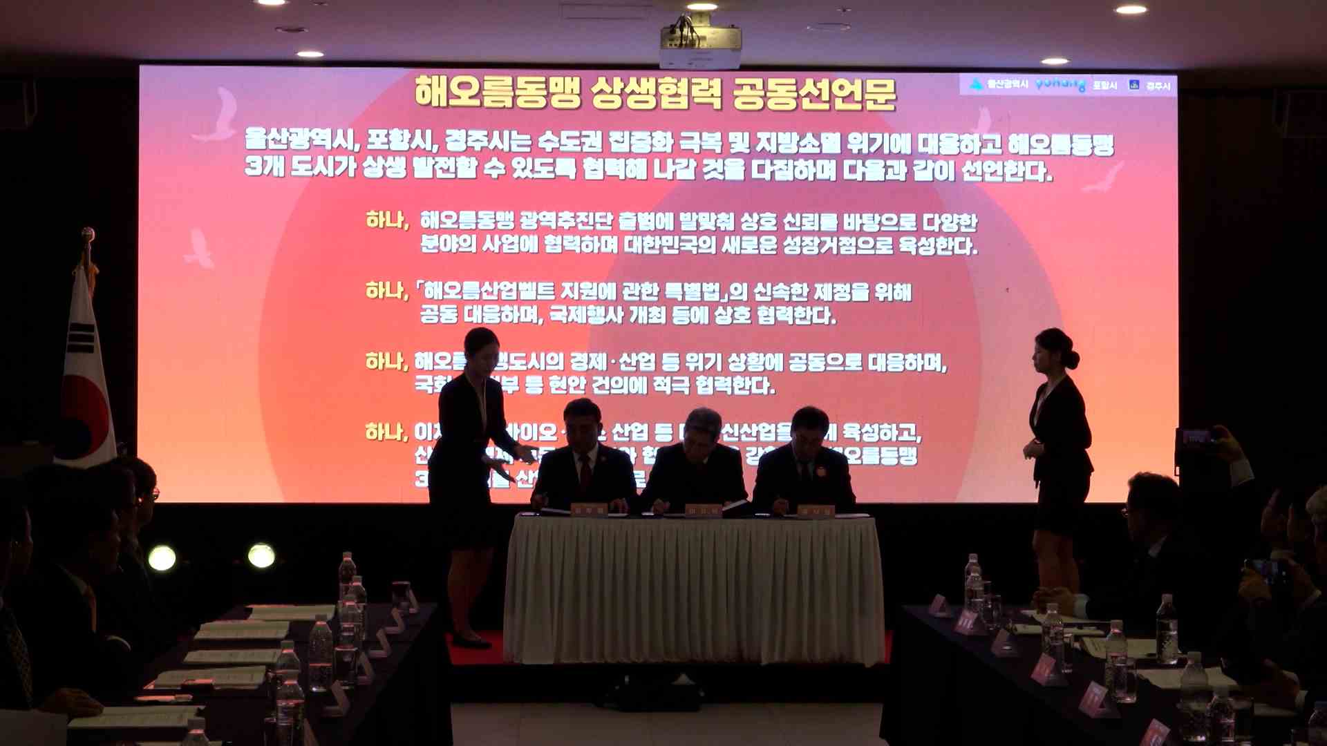 지난 2016년 마련된 울산-경주-포항의 해오름동맹이 광역추진단을 공식 출범하기로 하고 상생협력 공동선언문을 발표했습니다.