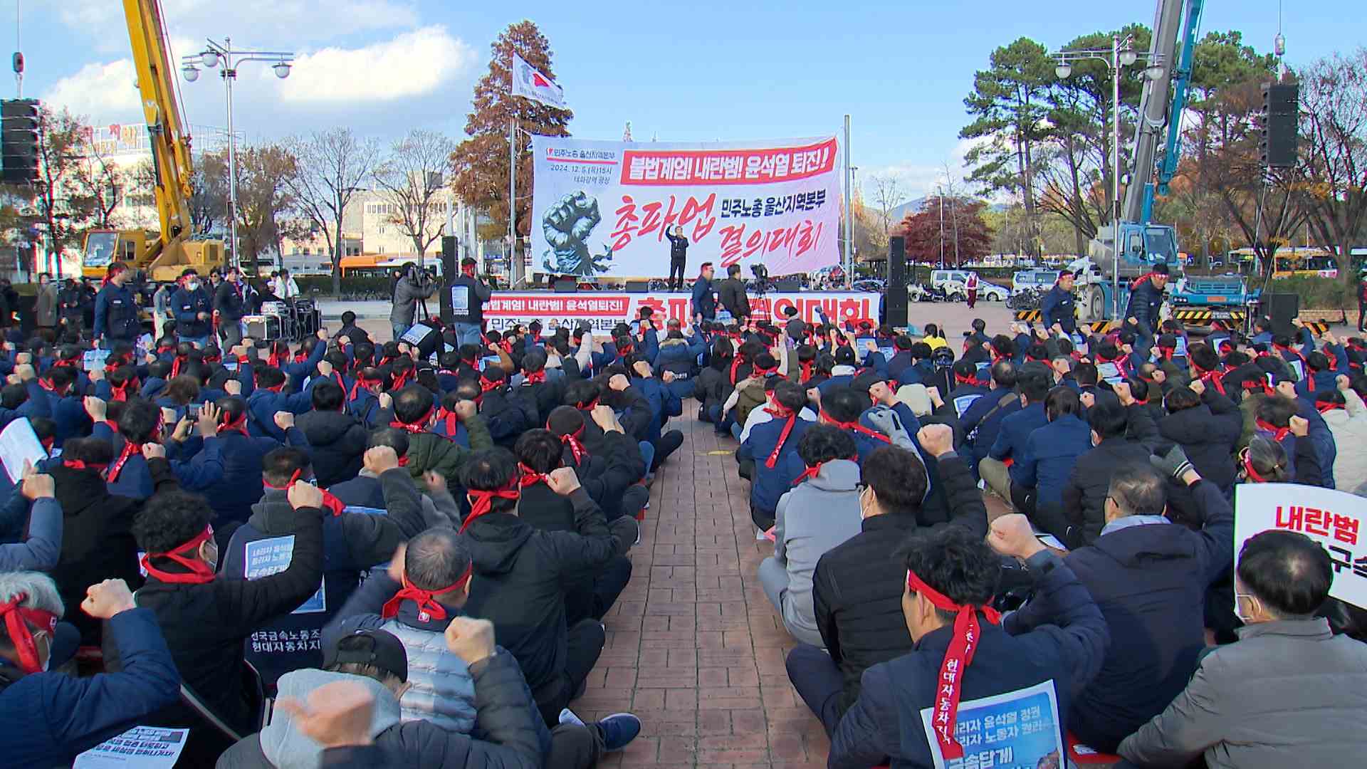 윤석열 대통령의 퇴진을 요구하며 민주노총이 총파업을 선언한 가운데 현대자동차 노동조합이 오늘(12/5)부터 이틀 동안 2시간 부분파업을 실시한다고 밝혔습니다.