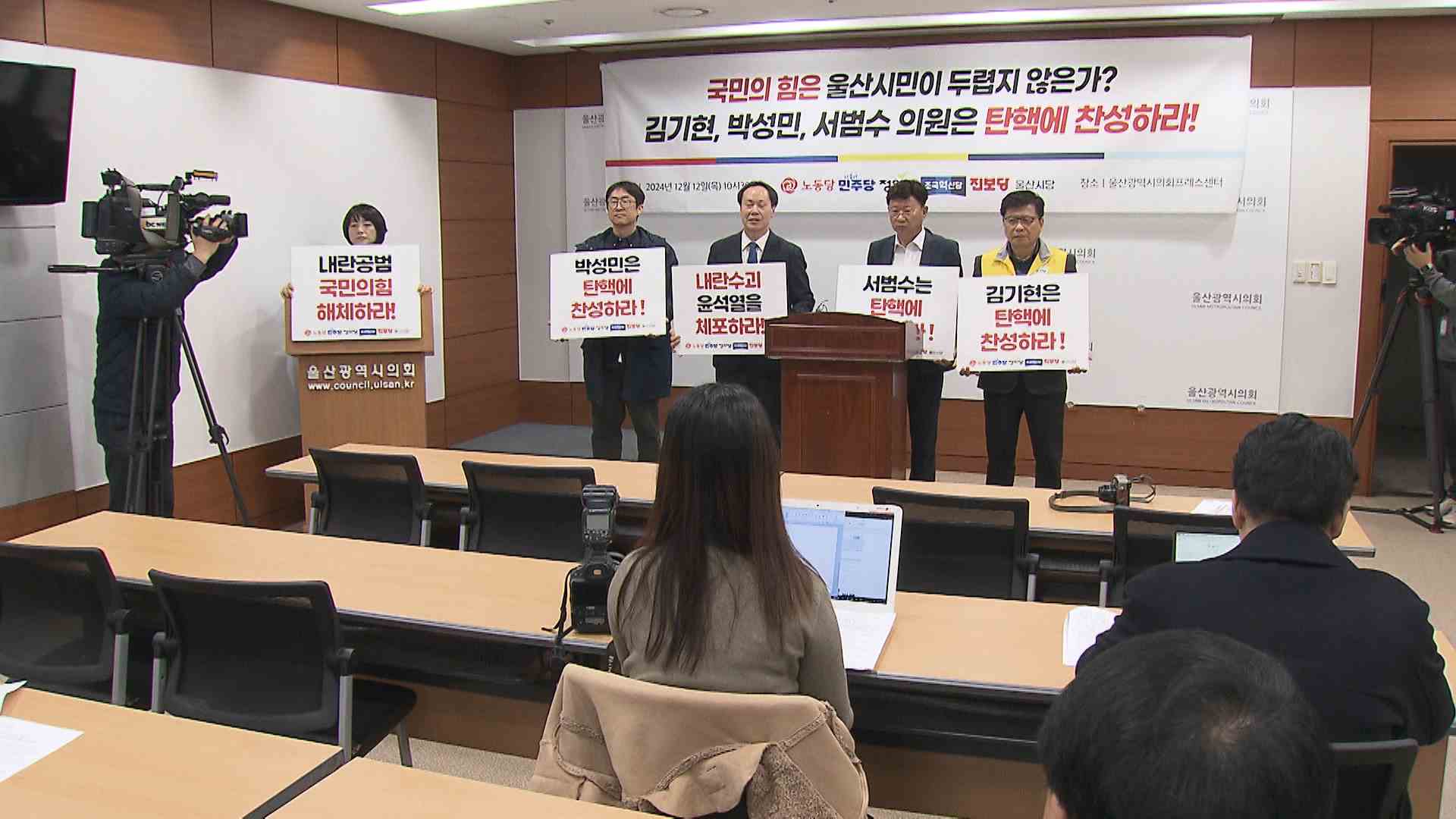 더불어민주당과 노동당, 정의당, 조국혁신당, 진보당 울산시당은 오늘(12/12) 기자회견을 열고 지역 국회의원들이 대통령 탄핵에 동참하라고 요구했습니다.