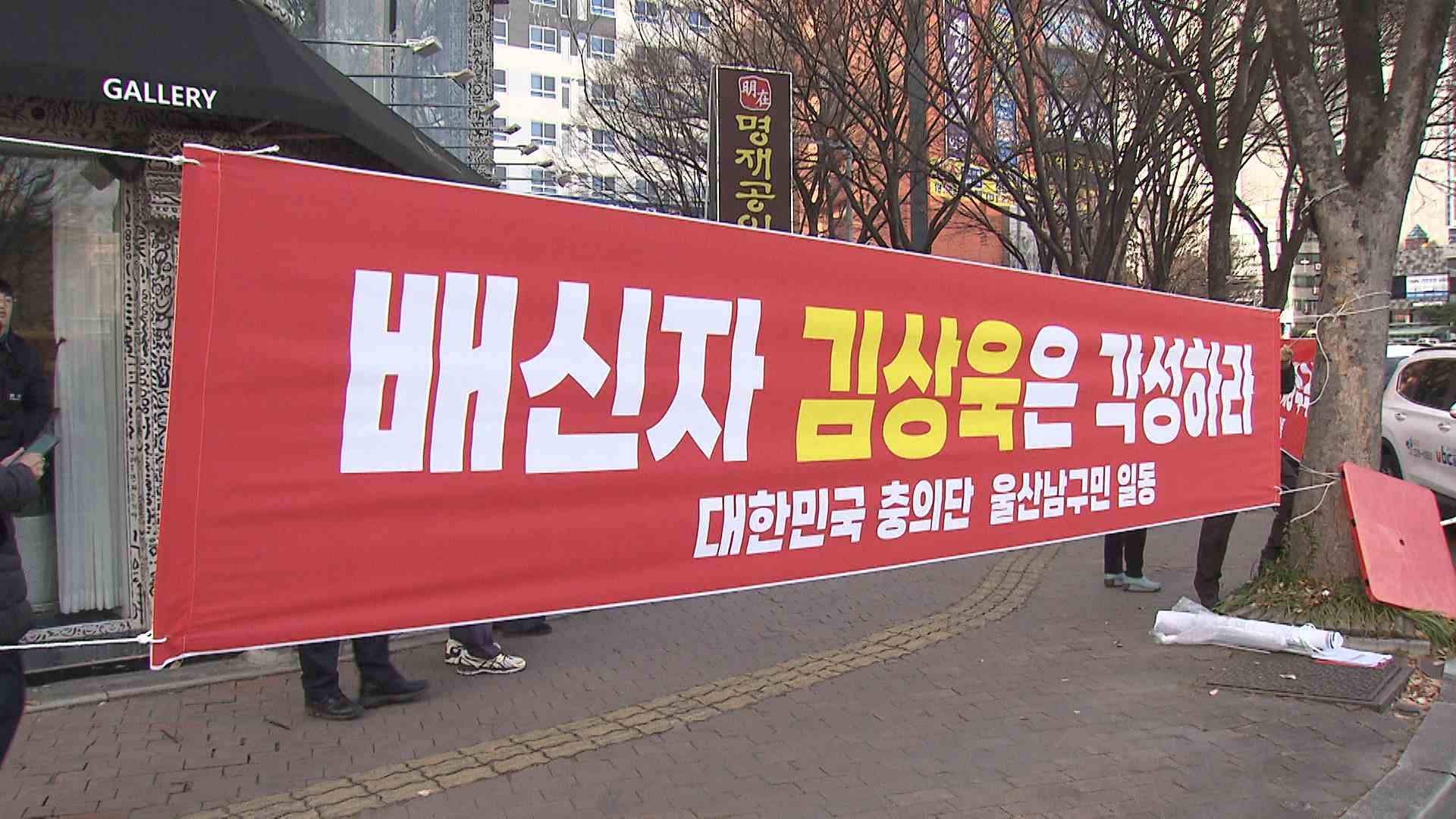 울산지역 국민의힘 일부 당원들로 구성된 보수단체는 오늘 국민의힘 김상욱 국회의원 사무실 앞에서 탄핵에 찬성한 김상욱 의원을 규탄하는 집회를 가졌습니다.