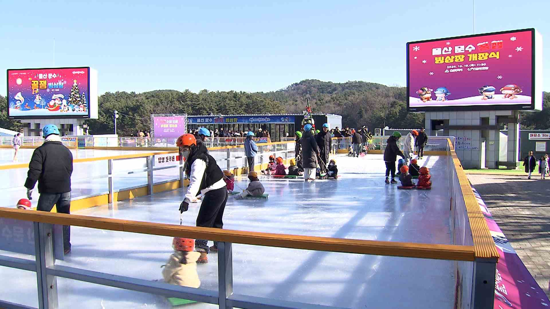 매년 겨울 울산체육공원 내 호반광장에 마련되는 문수 빙상장이 오늘(12/19) 개장식을 갖고 본격 운영에 들어갔습니다.