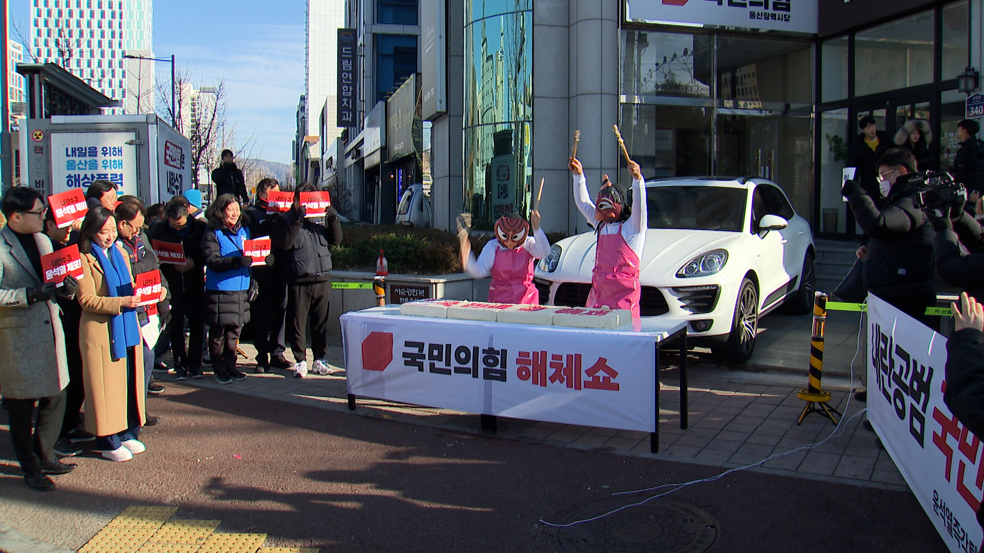 야당과 시민사회단체 노동계 등으로 구성된 윤석열즉각퇴진 울산운동본부가 국민의힘을 내란 동조당으로 규정하고 당 해체를 요구했습니다.