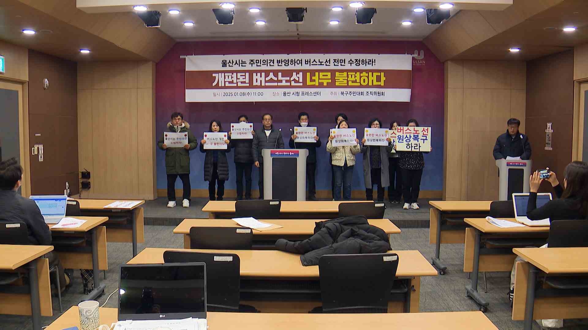 울산 북구주민대회 조직위원회는 오늘(1/8) 기자회견을 열고 울산시는 버스노선을 다시 개편해야 한다고 주장했습니다.