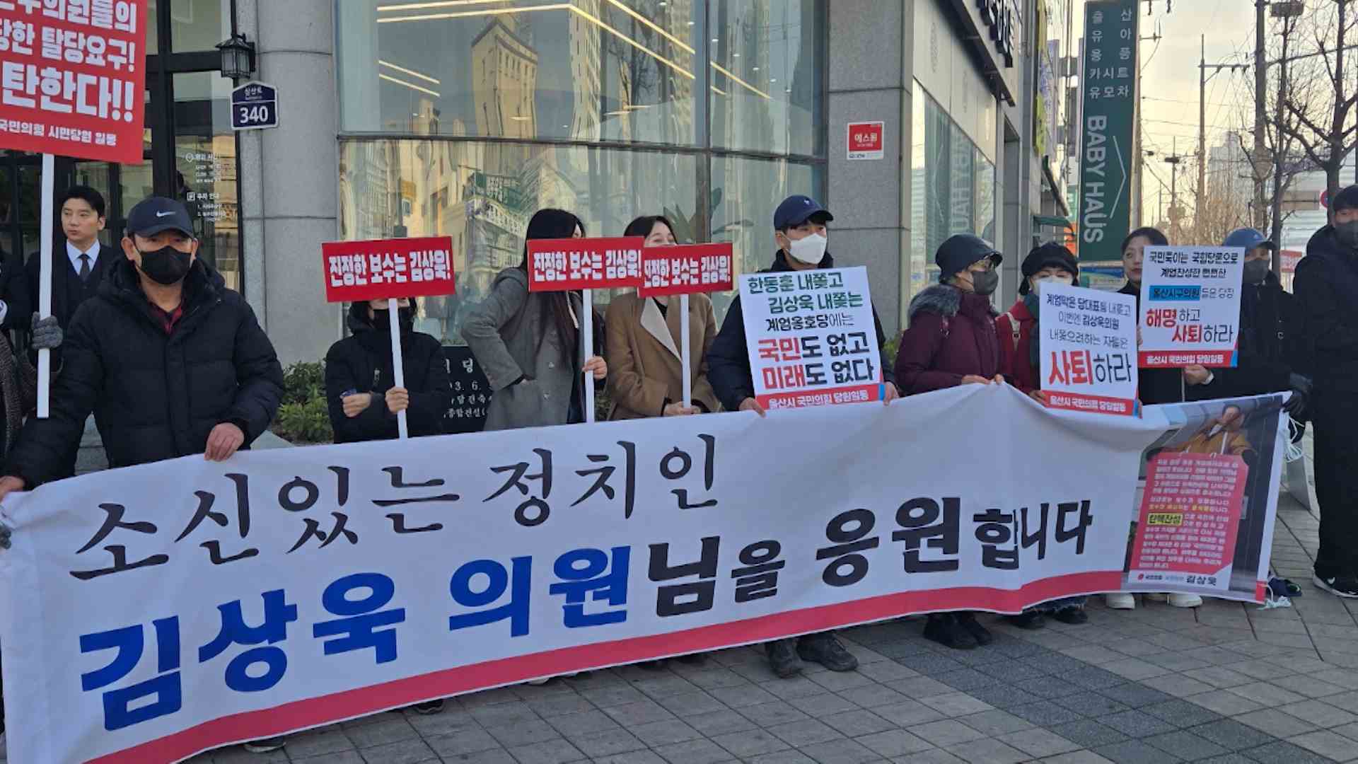 국민의힘 한동훈 전 대표를 지지하는 모임 회원 30여 명은 오늘(1/24) 국민의힘 울산시당 앞에서 김상욱 의원 지지 집회를 가졌습니다.