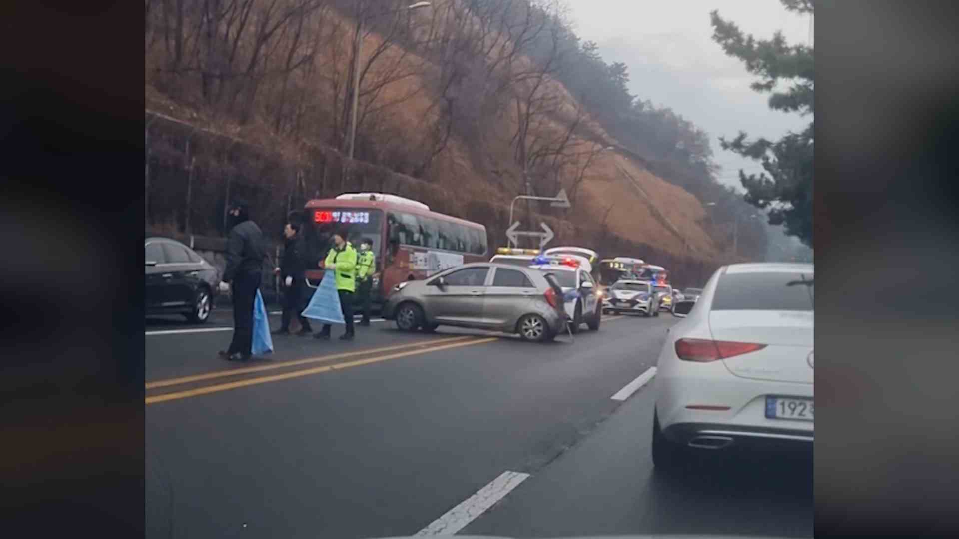 경찰은 1차로를 달리던 승용차가 빗길에 미끄러지며 중앙선을 넘어 사고가 발생한 것으로 보고 정확한 사고 경위를 조사하고 있습니다.