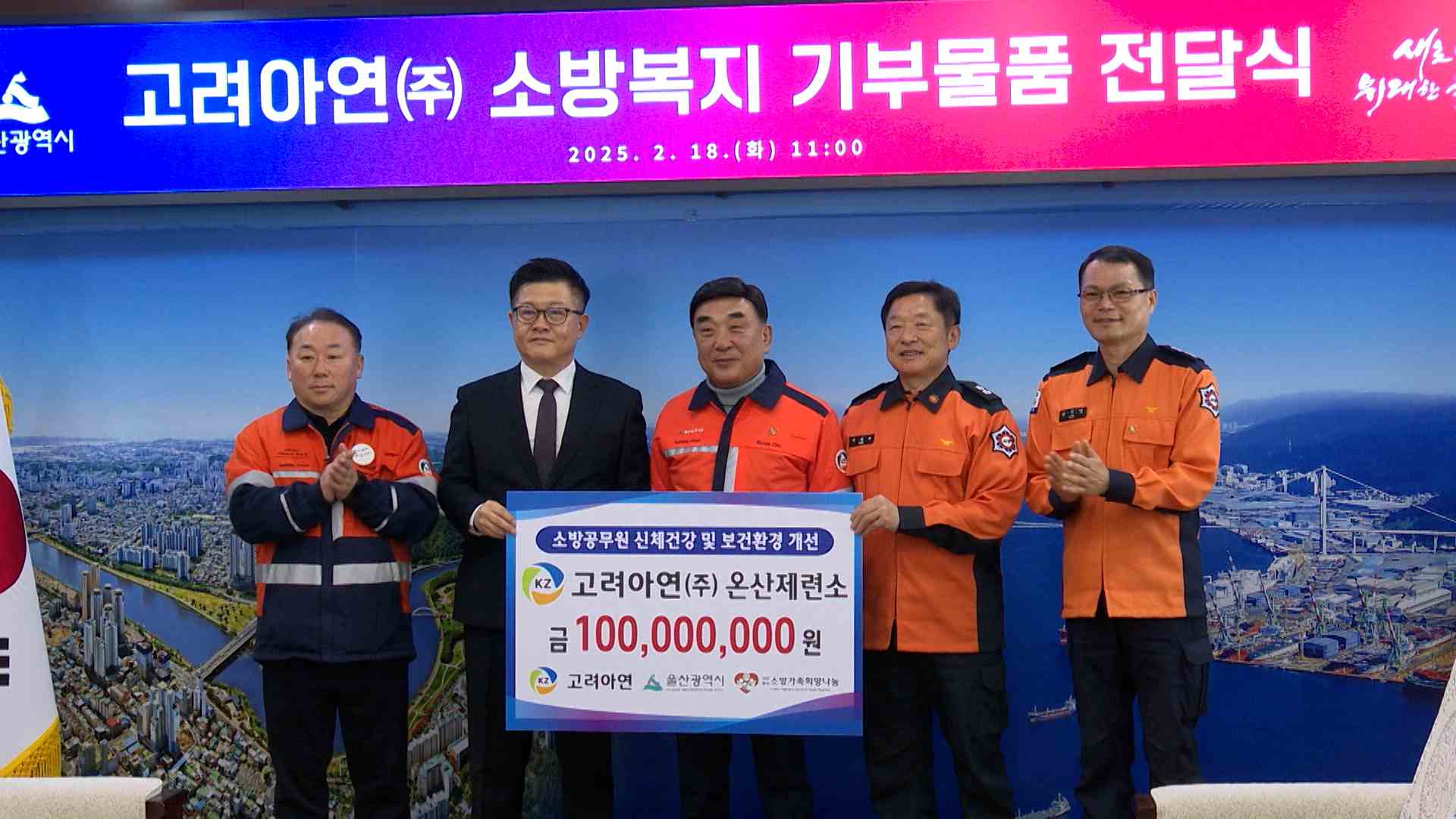 고려아연 온산제련소가 오늘(2/18) 소방공무원들의 보건 환경 개선을 위한 물품 1억 원을 기부했습니다.