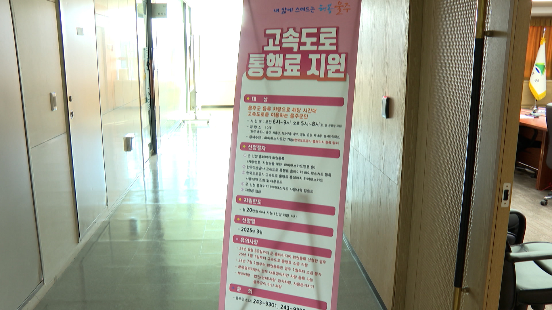 지원 대상은 울주군민과 울주군 등록 차량으로 평일 오전 6~9시, 오후 5~8시 고속도로 통행료를 월 최대 20만 원까지 지원합니다.