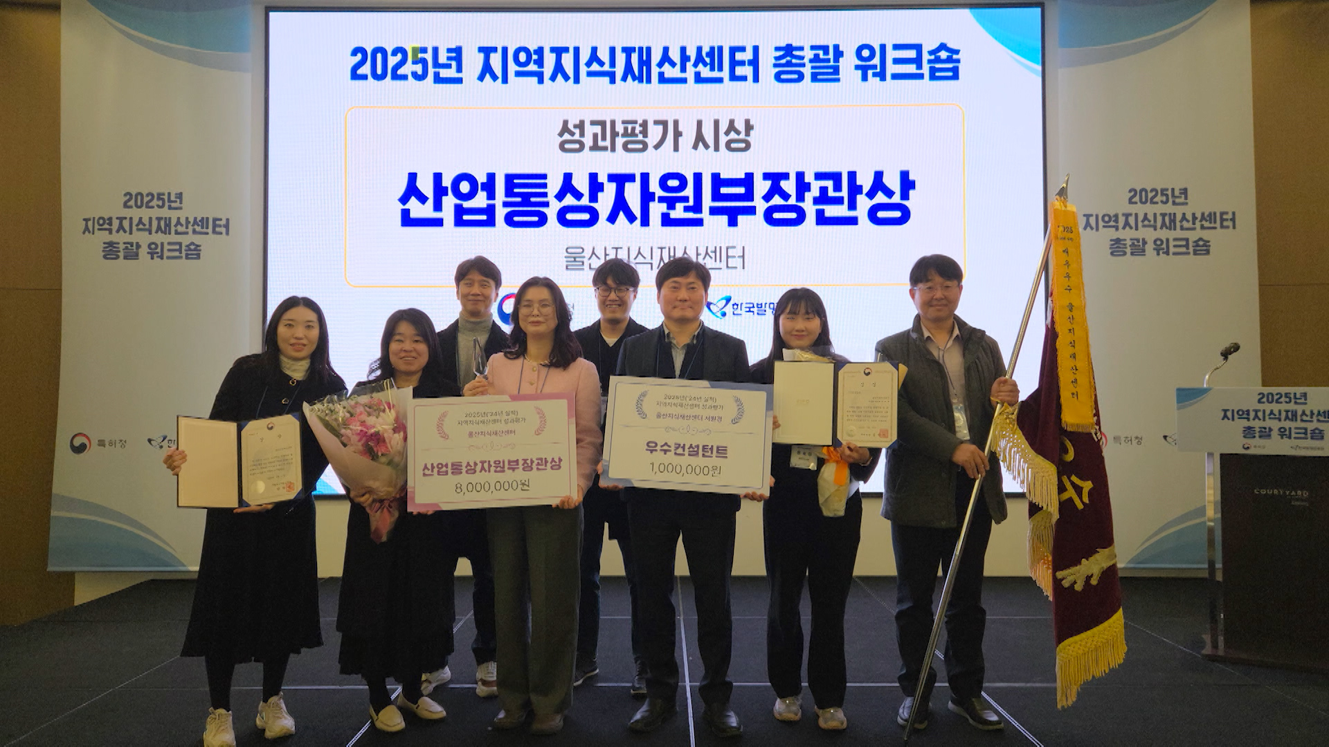 울산상공회의소 울산지식재산센터가 오늘(2/27) 세종에서 산업통상자원부 장관상을 받았습니다.