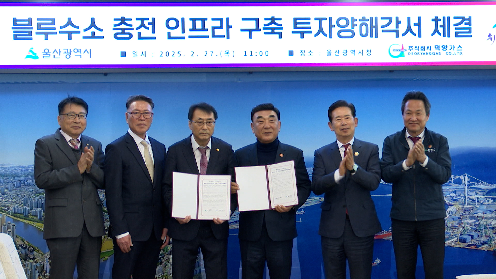 울산시는 오늘(2/27) 덕양가스와 협약을 맺고 내년 8월까지 부곡용연지구 내 1만㎡ 부지에 블루수소 충전 인프라를 구축하기로 했습니다.