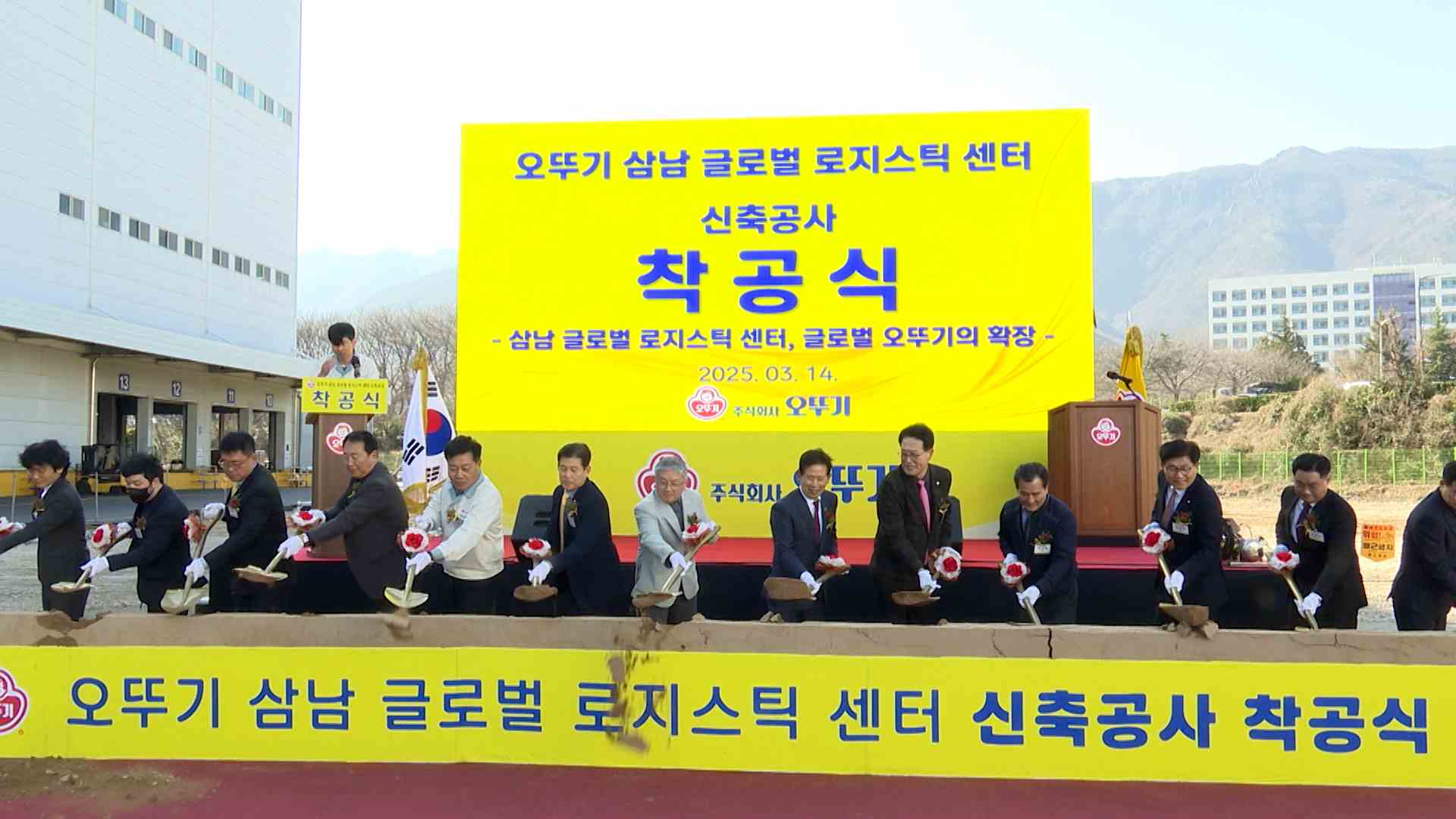 식품업체 오뚜기가 오늘(3/14) 울산 삼남공장에서 물류시설인 글로벌 로지스틱센터 착공식을 열었습니다.