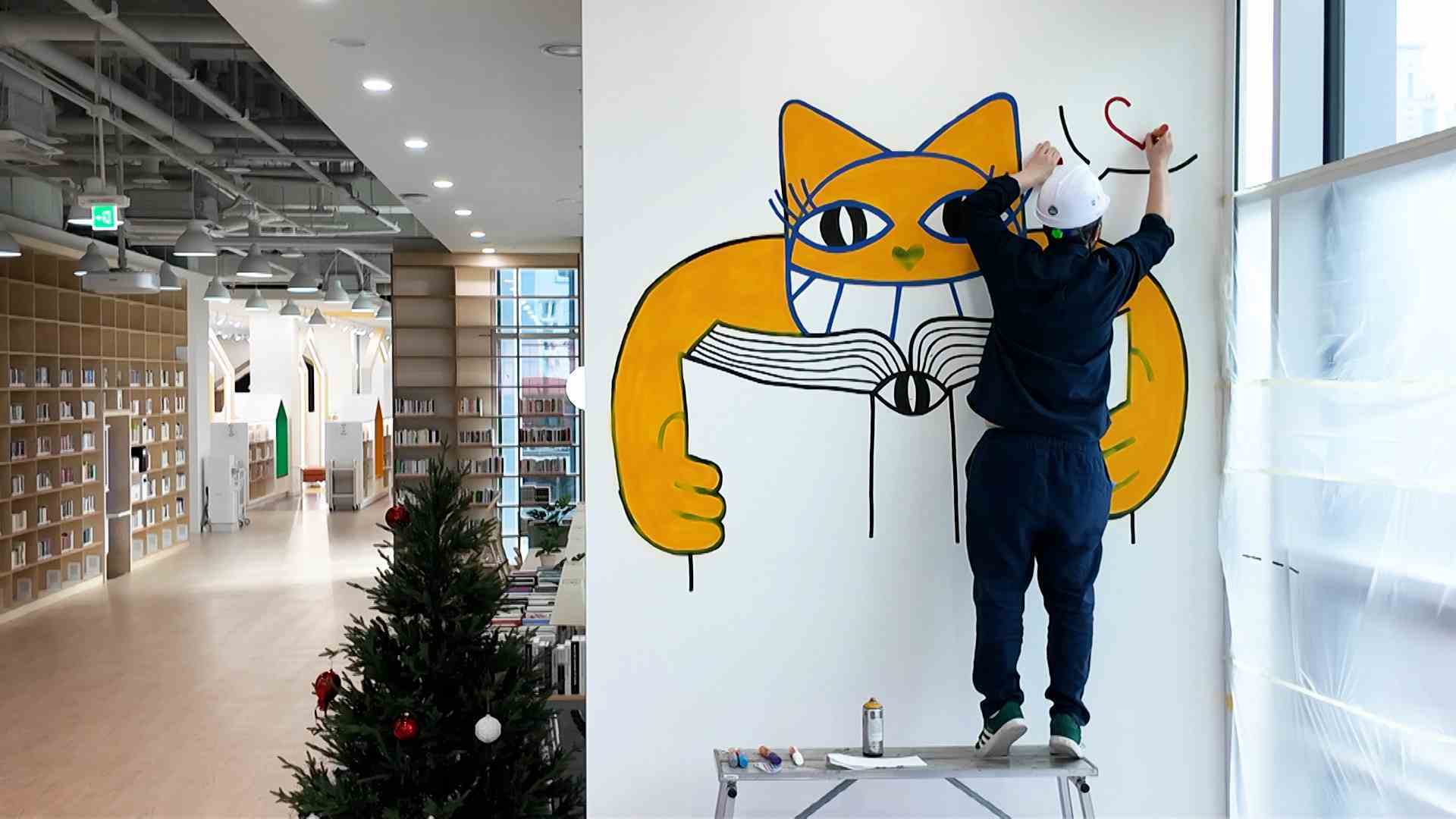 세계적인 팝아트 예술가 토마 뷔유가 지역 웹툰 작가들와 공동으로 울산어린이청소년도서관 벽화 꾸미기 작업을 진행합니다.